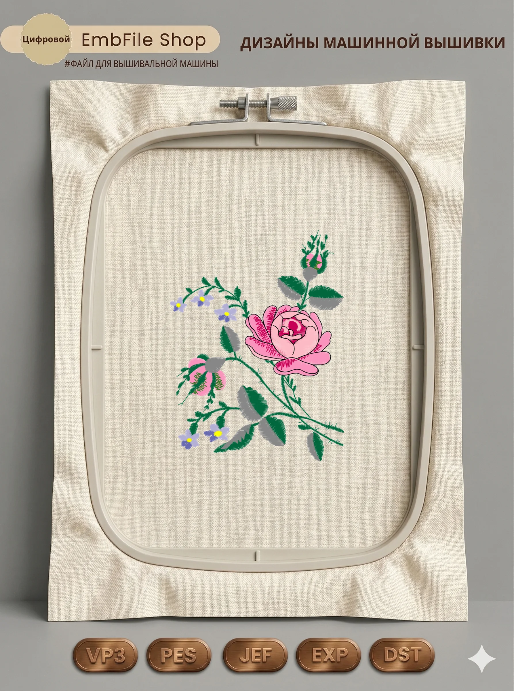 Это цифровой файл для вышивальной машины, а не физический товар (нашивка). Для работы с файлом вам необходимо иметь вышивальную машину и способ передачи файла на устройство (USB-флешка и т.д.).