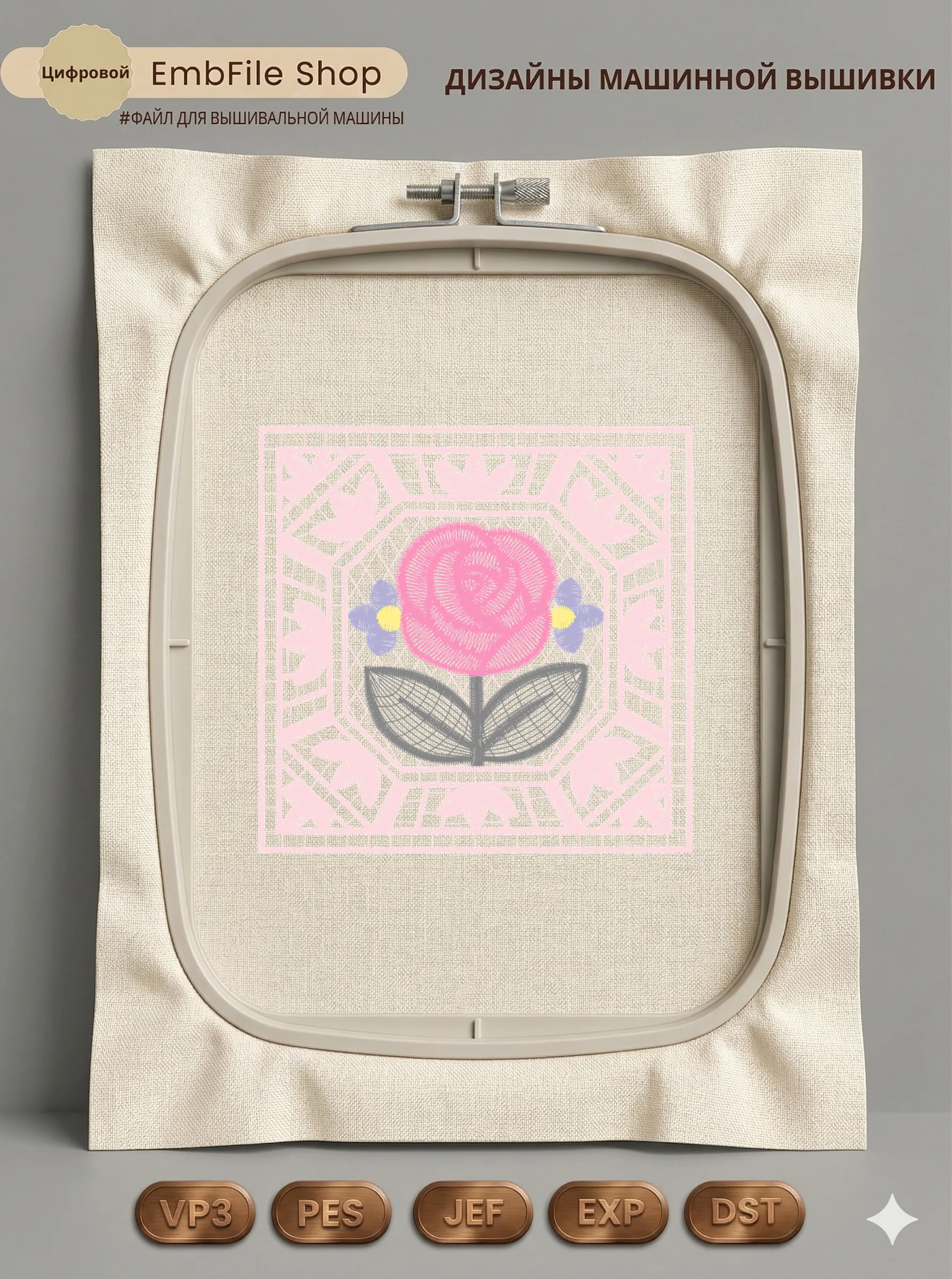 Дизайн протестирован на различных типах тканей, что гарантирует чистое и стабильное нанесение стежков.