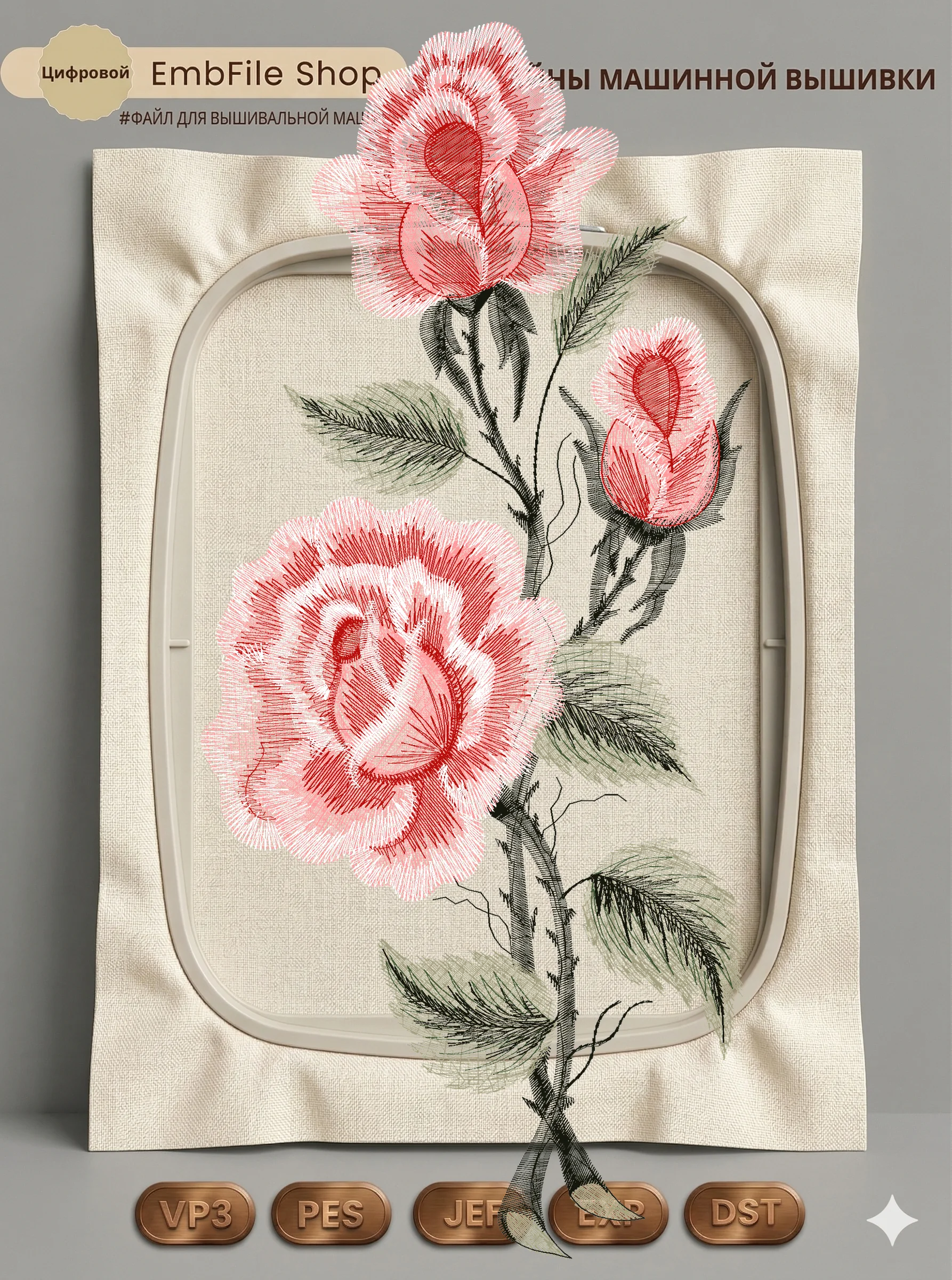 Дизайн протестирован на различных типах тканей, что гарантирует чистое и стабильное нанесение стежков.