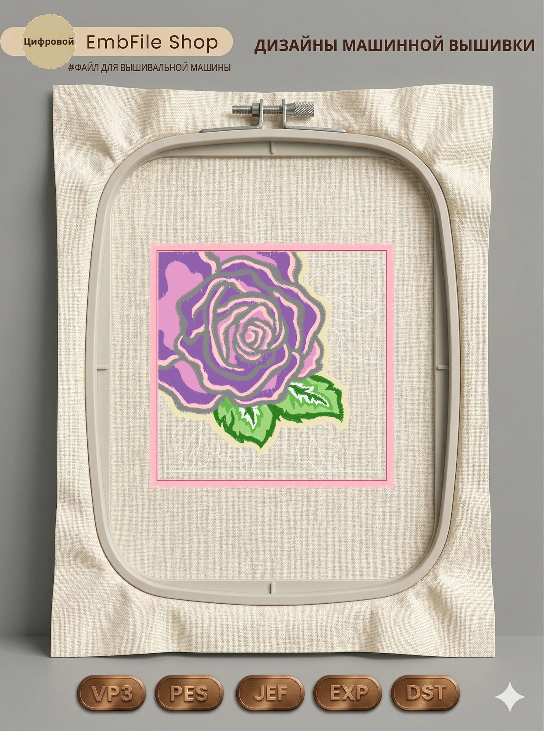 Это цифровой файл для вышивальной машины, а не физический товар (нашивка). Для работы с файлом вам необходимо иметь вышивальную машину и способ передачи файла на устройство (USB-флешка и т.д.).