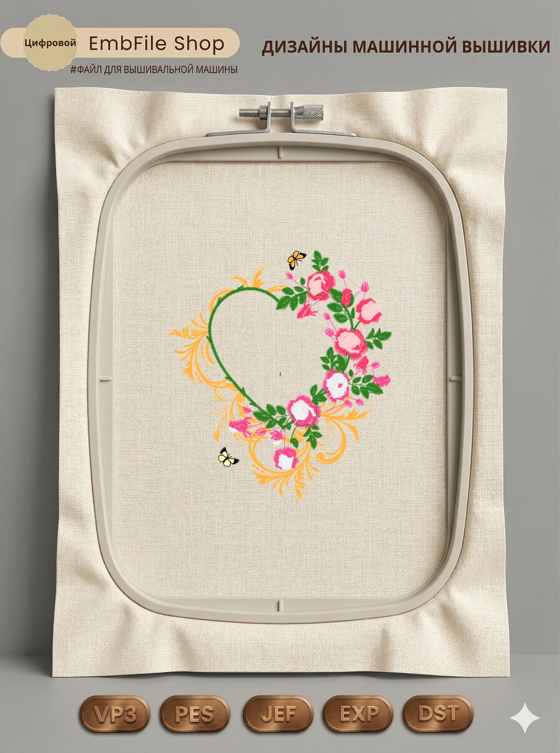 Это цифровой файл для вышивальной машины, а не физический товар (нашивка). Для работы с файлом вам необходимо иметь вышивальную машину и способ передачи файла на устройство (USB-флешка и т.д.).