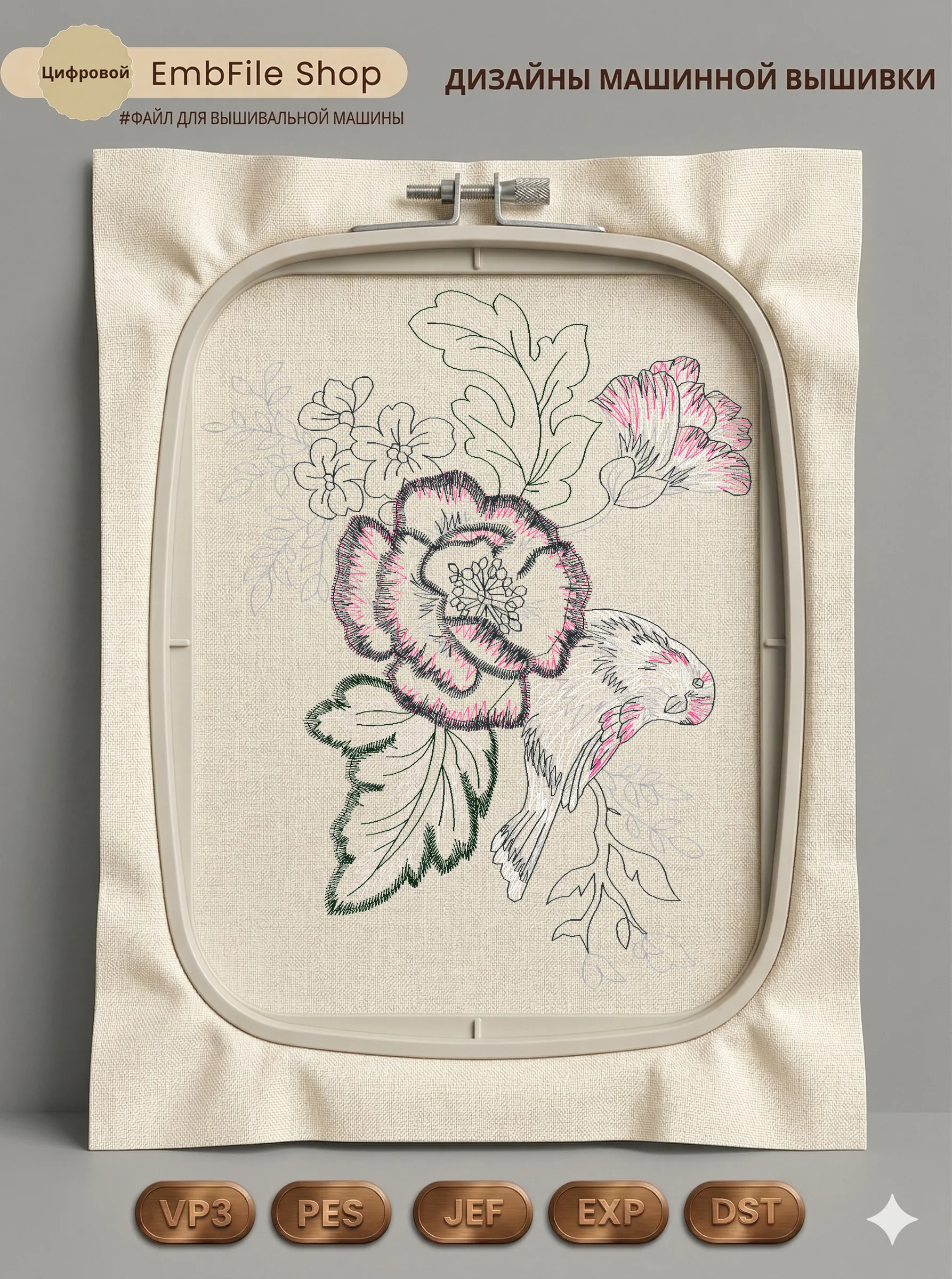 Дизайн протестирован на различных типах тканей, что гарантирует чистое и стабильное нанесение стежков.