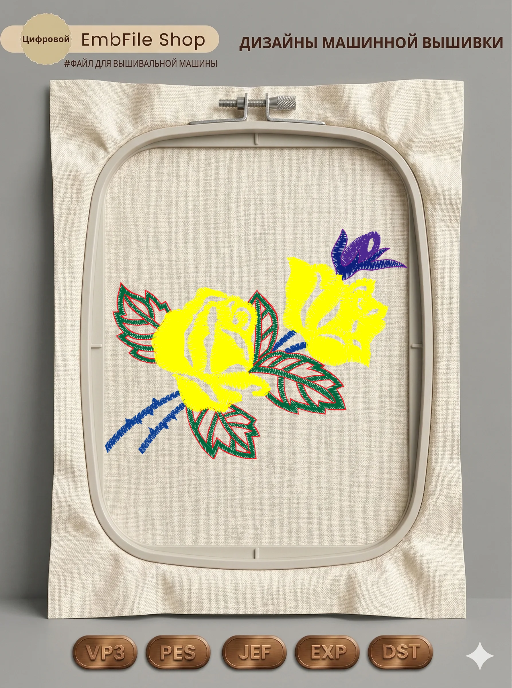 Это цифровой файл для вышивальной машины, а не физический товар (нашивка). Для работы с файлом вам необходимо иметь вышивальную машину и способ передачи файла на устройство (USB-флешка и т.д.).