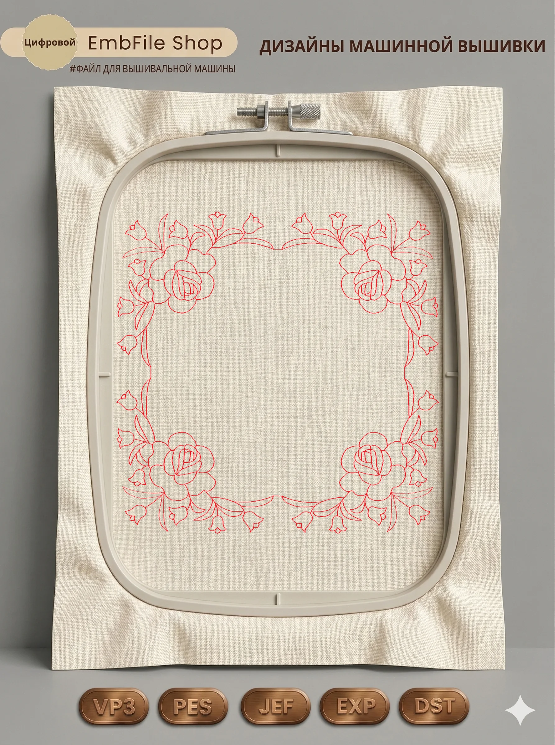 Дизайн протестирован на различных типах тканей, что гарантирует чистое и стабильное нанесение стежков.