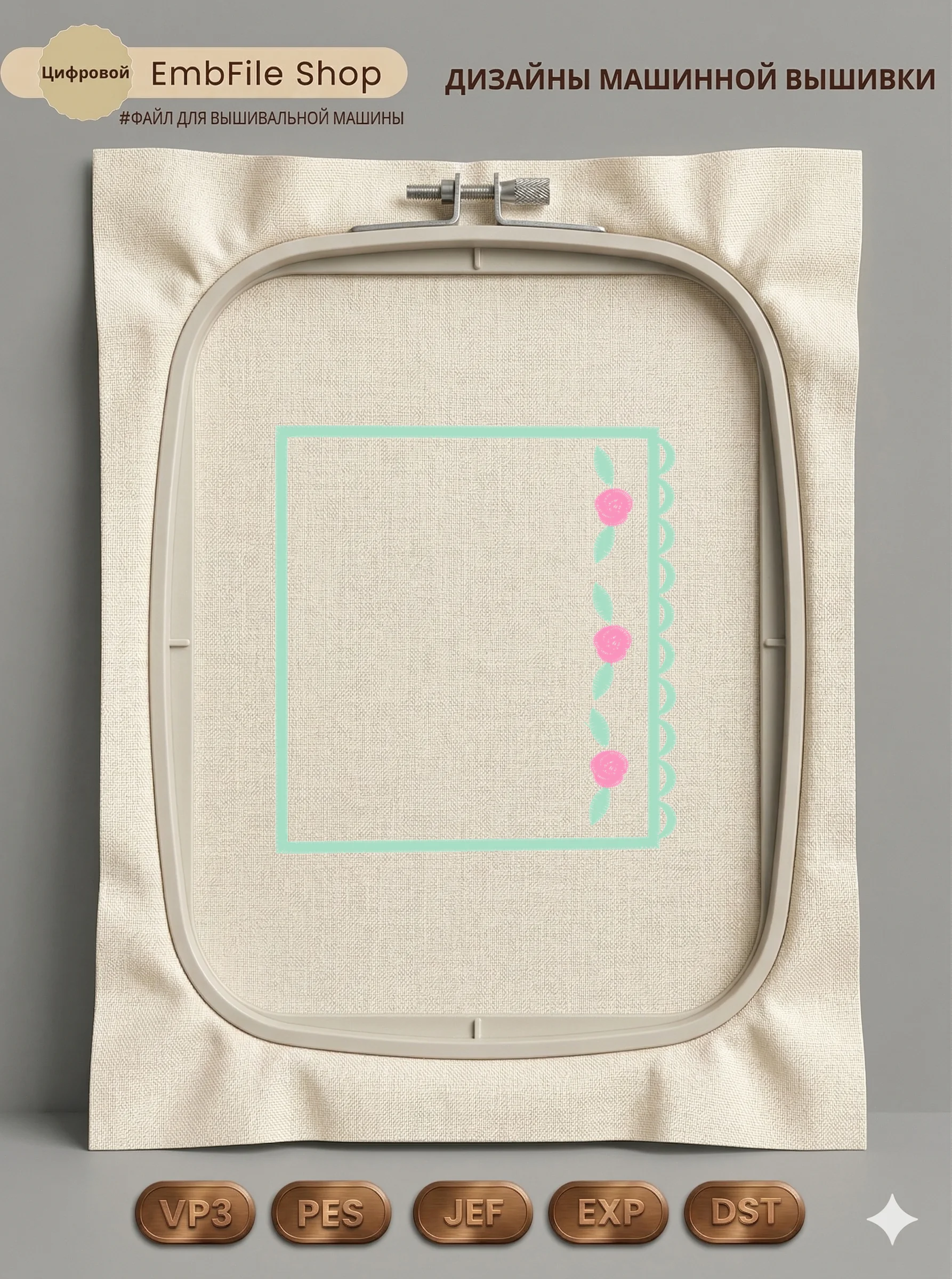 Дизайн протестирован на различных типах тканей, что гарантирует чистое и стабильное нанесение стежков.