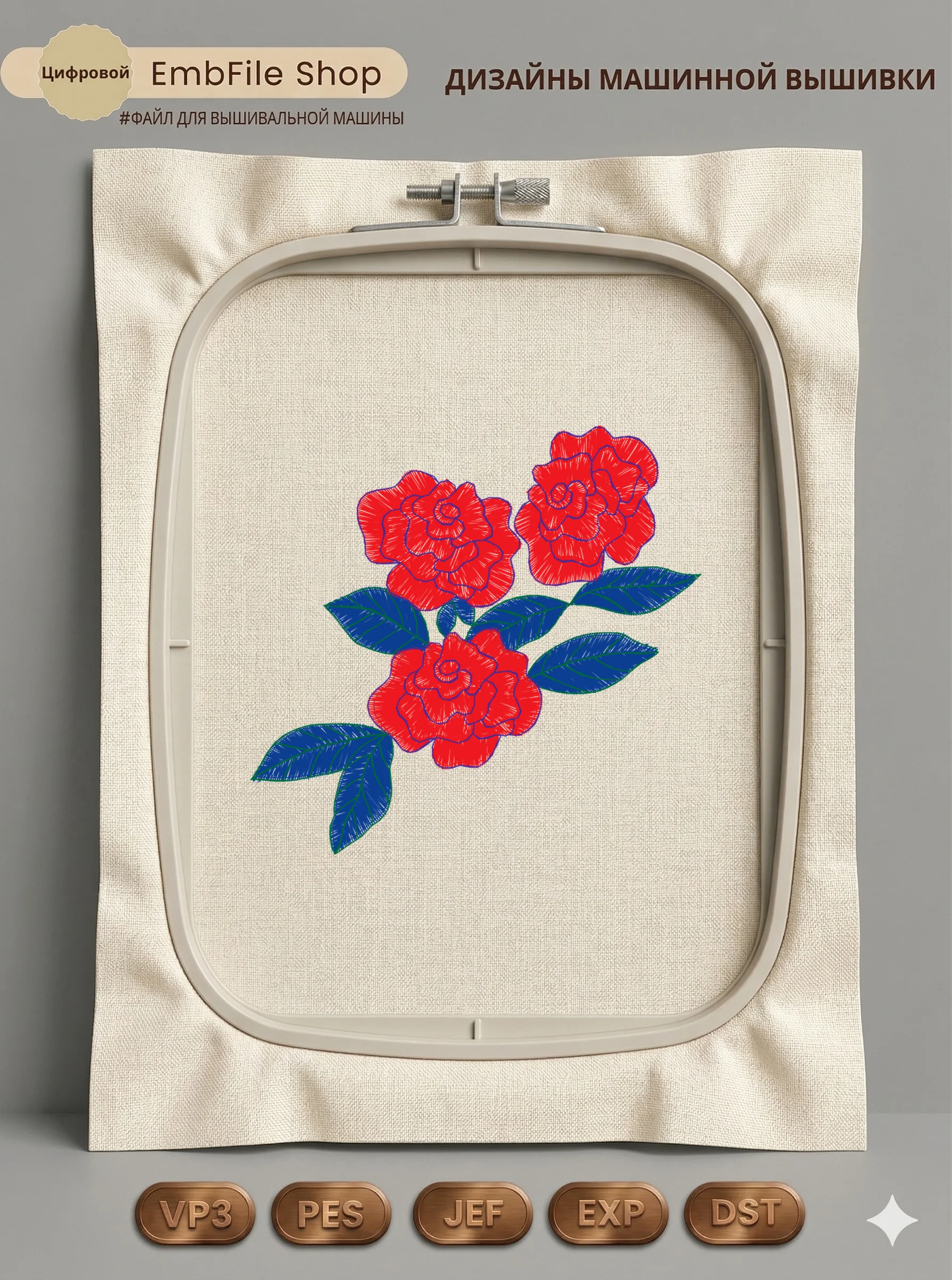 Это цифровой файл для вышивальной машины, а не физический товар (нашивка). Для работы с файлом вам необходимо иметь вышивальную машину и способ передачи файла на устройство (USB-флешка и т.д.).