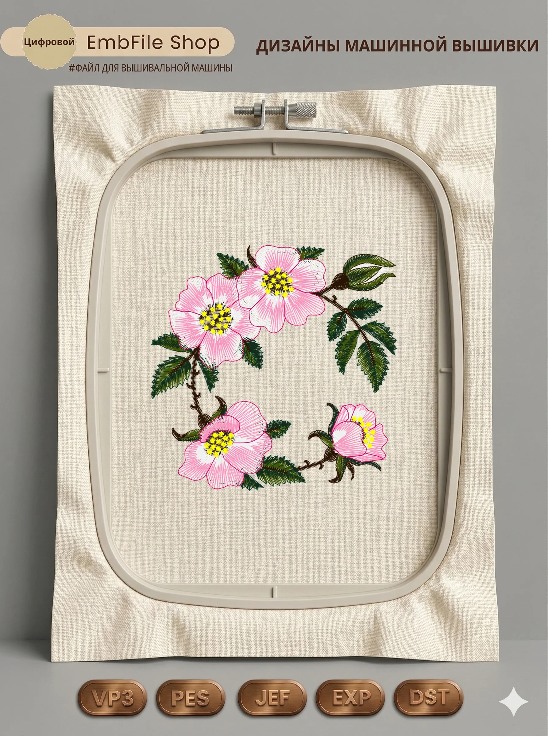 Это цифровой файл для вышивальной машины, а не физический товар (нашивка). Для работы с файлом вам необходимо иметь вышивальную машину и способ передачи файла на устройство (USB-флешка и т.д.).