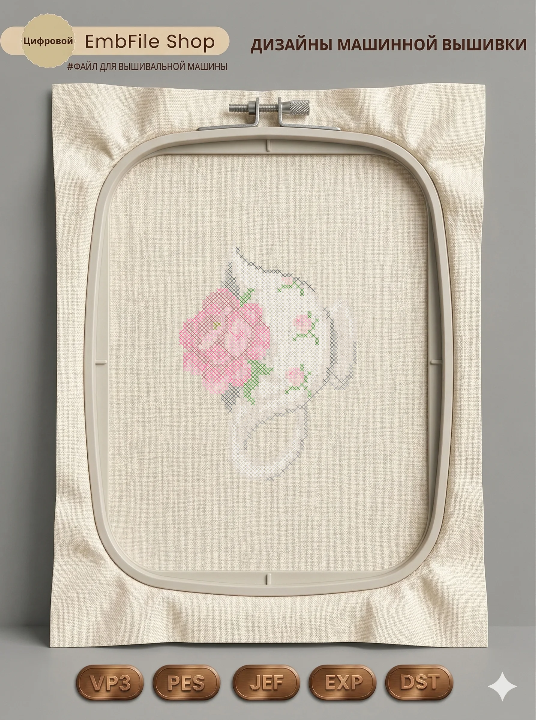 Это цифровой файл для вышивальной машины, а не физический товар (нашивка). Для работы с файлом вам необходимо иметь вышивальную машину и способ передачи файла на устройство (USB-флешка и т.д.).