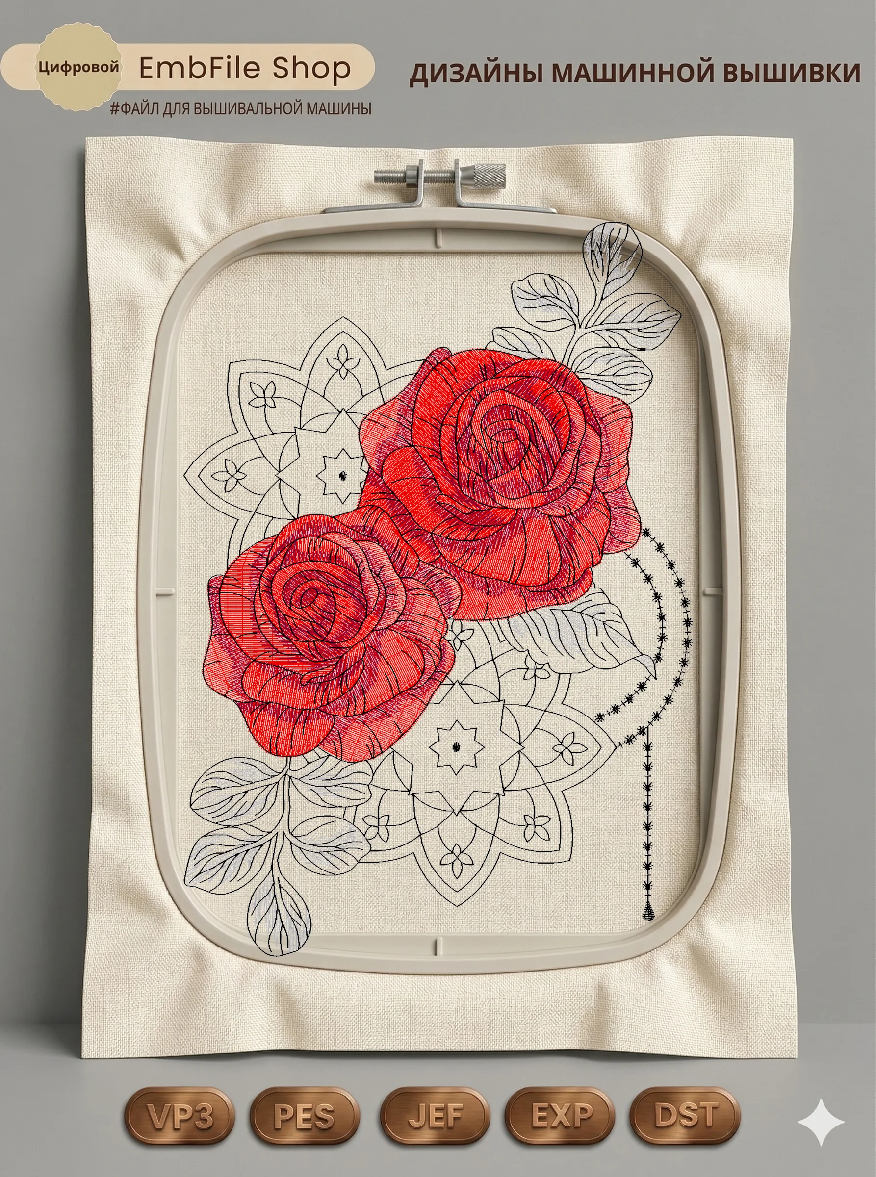 Дизайн протестирован на различных типах тканей, что гарантирует чистое и стабильное нанесение стежков.