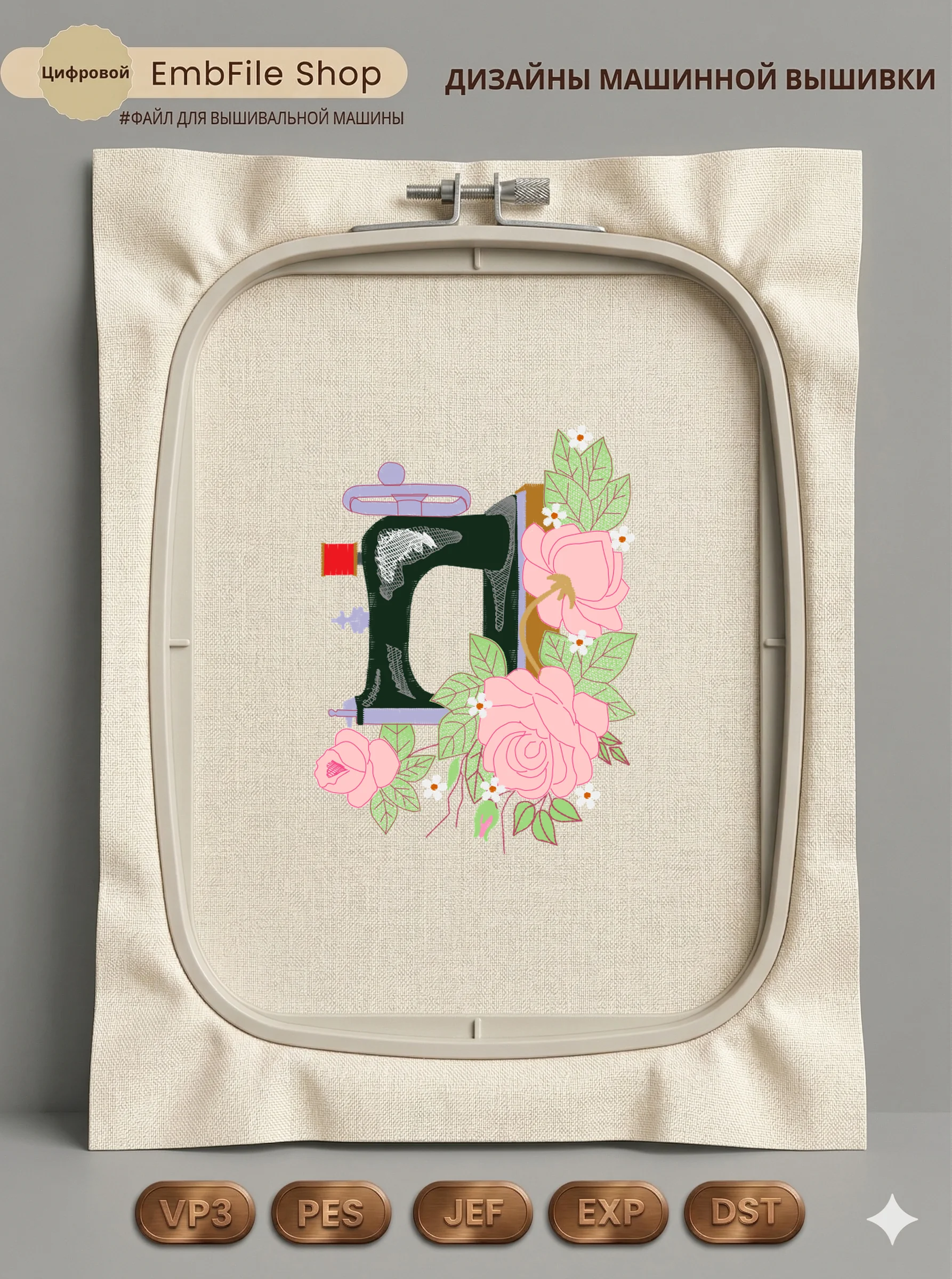 Дизайн протестирован на различных типах тканей, что гарантирует чистое и стабильное нанесение стежков.