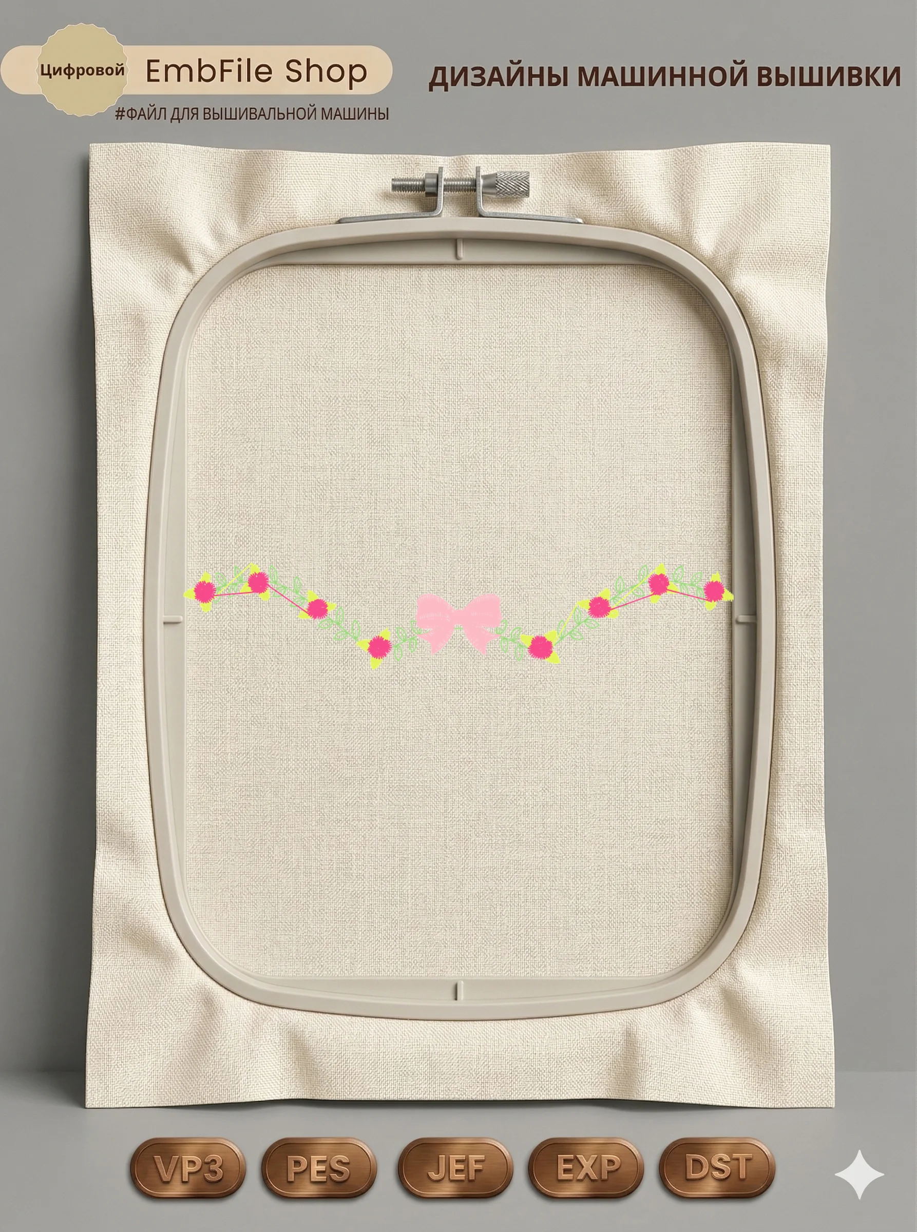Это цифровой файл для вышивальной машины, а не физический товар (нашивка). Для работы с файлом вам необходимо иметь вышивальную машину и способ передачи файла на устройство (USB-флешка и т.д.).