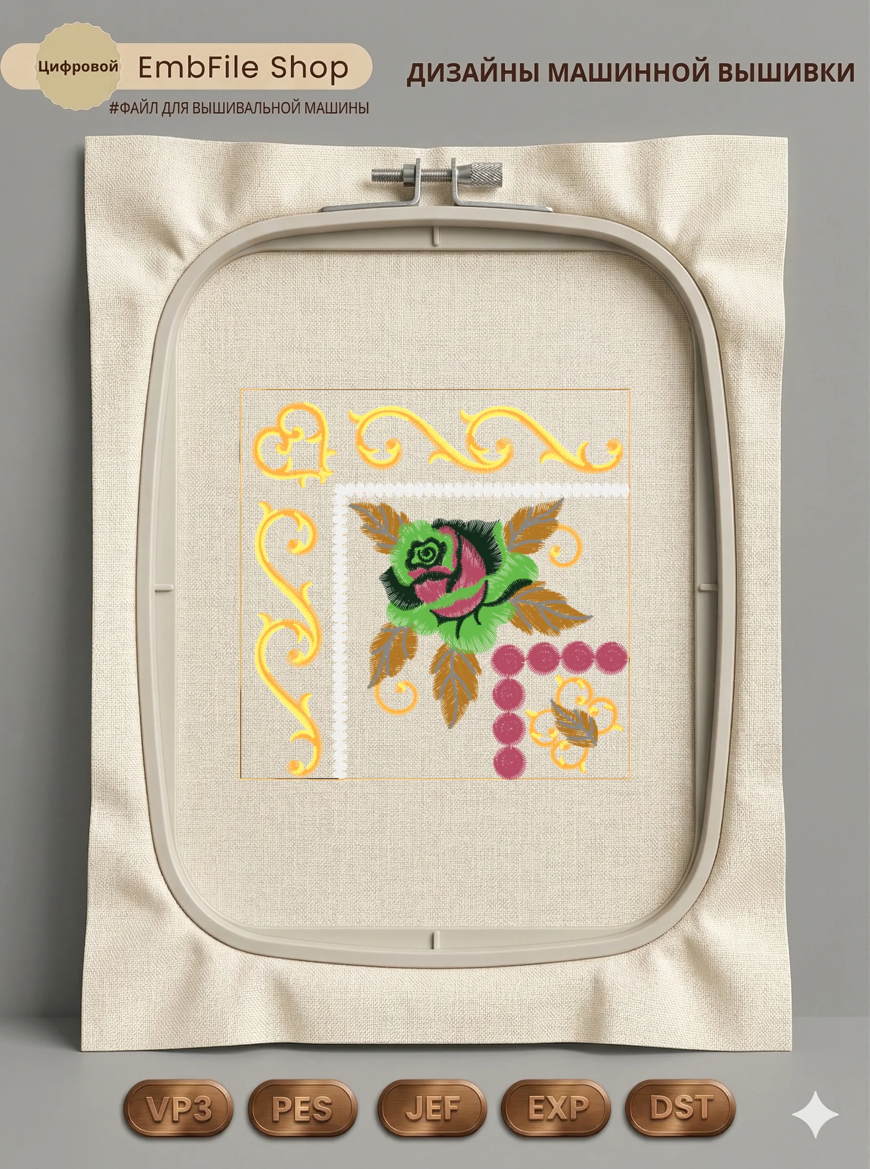Дизайн протестирован на различных типах тканей, что гарантирует чистое и стабильное нанесение стежков.