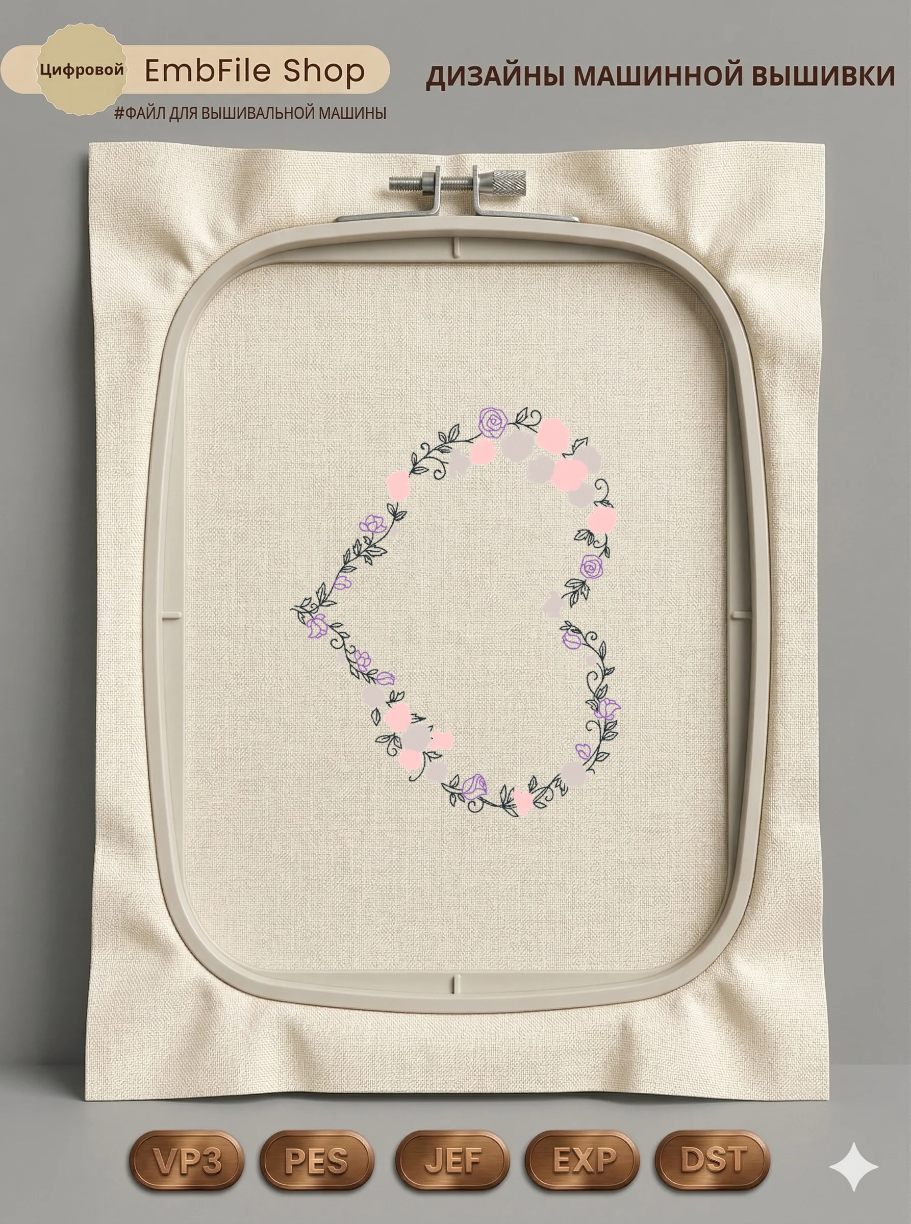 Это цифровой файл для вышивальной машины, а не физический товар (нашивка). Для работы с файлом вам необходимо иметь вышивальную машину и способ передачи файла на устройство (USB-флешка и т.д.).