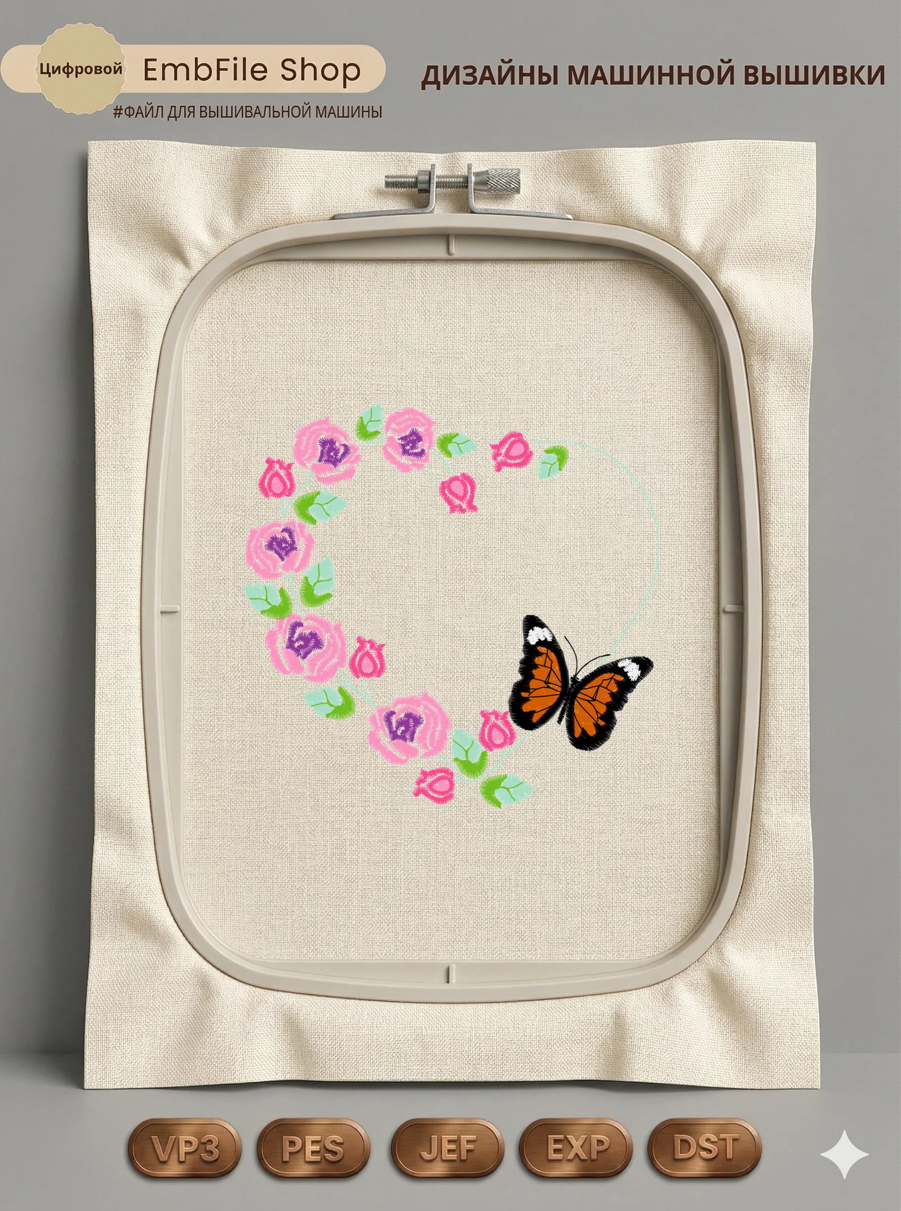 Это цифровой файл для вышивальной машины, а не физический товар (нашивка). Для работы с файлом вам необходимо иметь вышивальную машину и способ передачи файла на устройство (USB-флешка и т.д.).