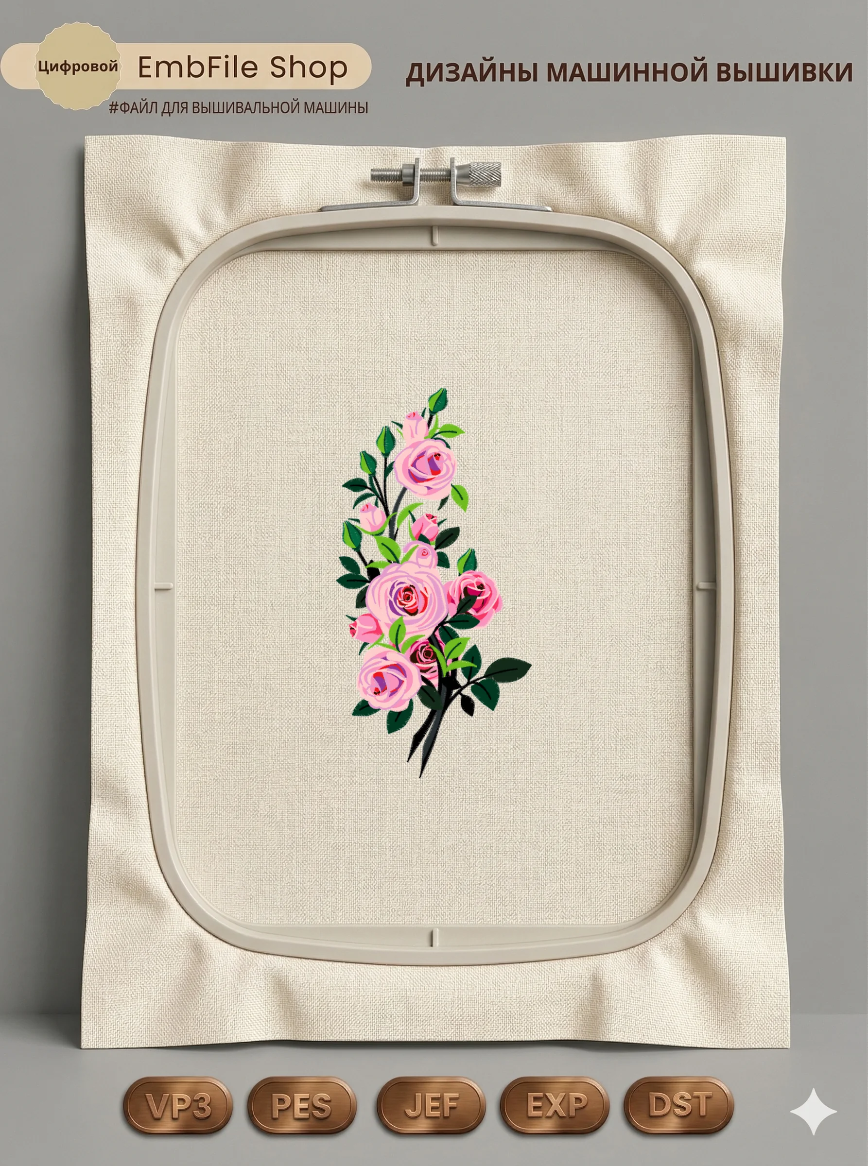 Это цифровой файл для вышивальной машины, а не физический товар (нашивка). Для работы с файлом вам необходимо иметь вышивальную машину и способ передачи файла на устройство (USB-флешка и т.д.).