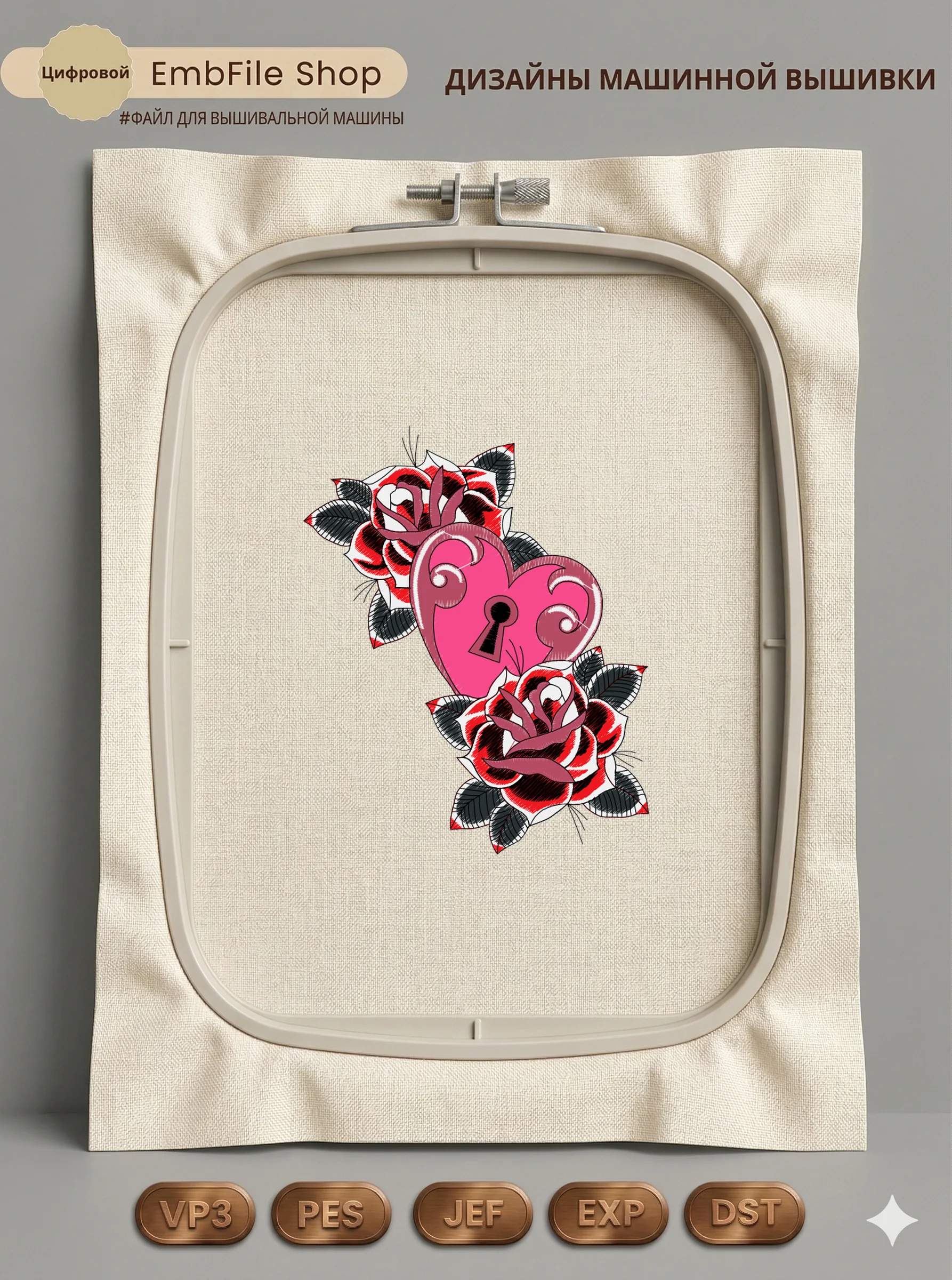 Это цифровой файл для вышивальной машины, а не физический товар (нашивка). Для работы с файлом вам необходимо иметь вышивальную машину и способ передачи файла на устройство (USB-флешка и т.д.).