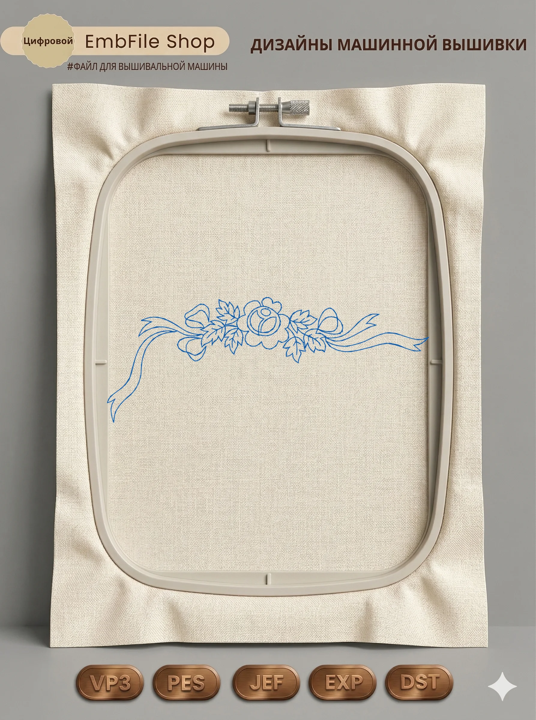 Это цифровой файл для вышивальной машины, а не физический товар (нашивка). Для работы с файлом вам необходимо иметь вышивальную машину и способ передачи файла на устройство (USB-флешка и т.д.).