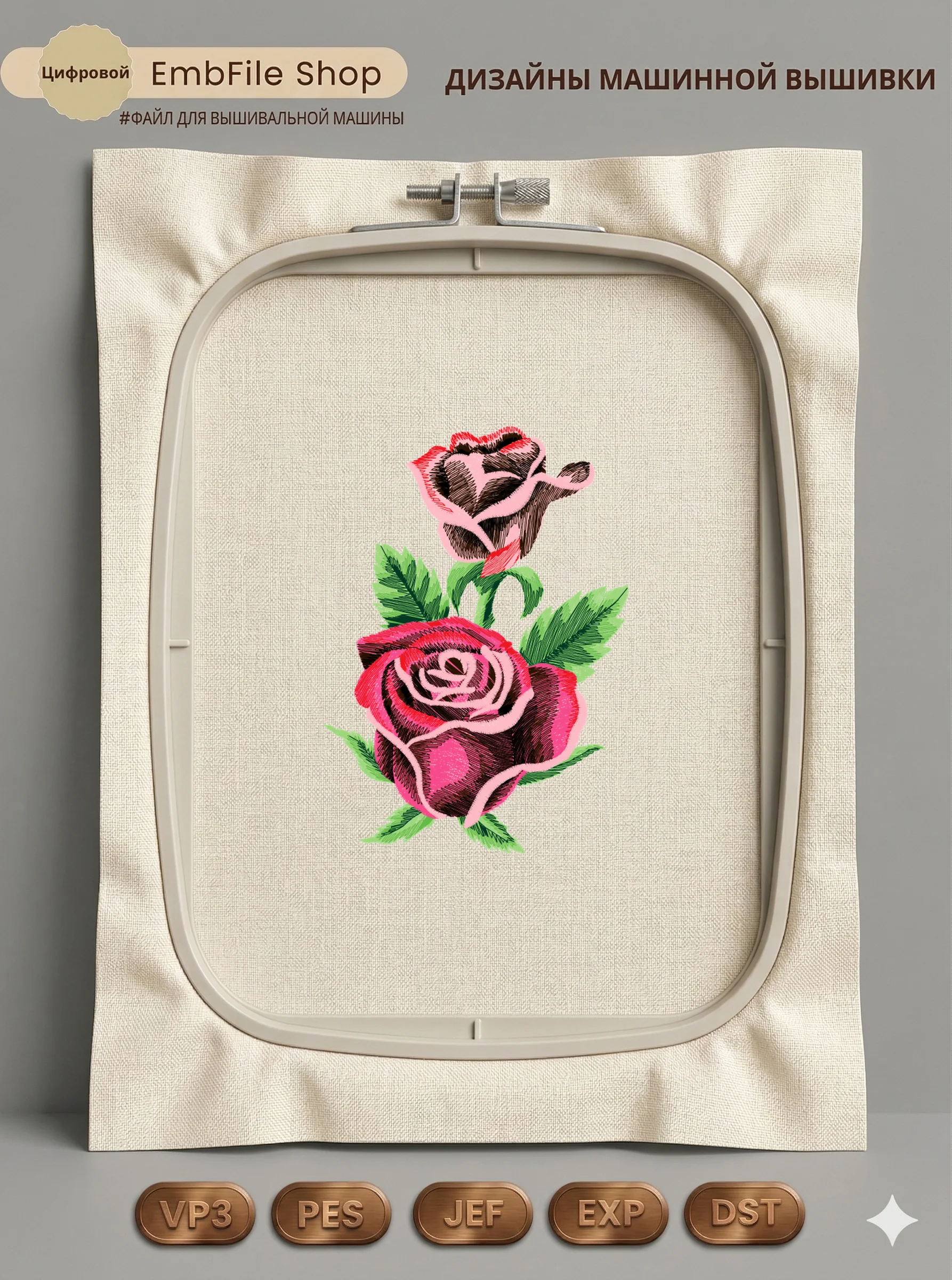 Это цифровой файл для вышивальной машины, а не физический товар (нашивка). Для работы с файлом вам необходимо иметь вышивальную машину и способ передачи файла на устройство (USB-флешка и т.д.).