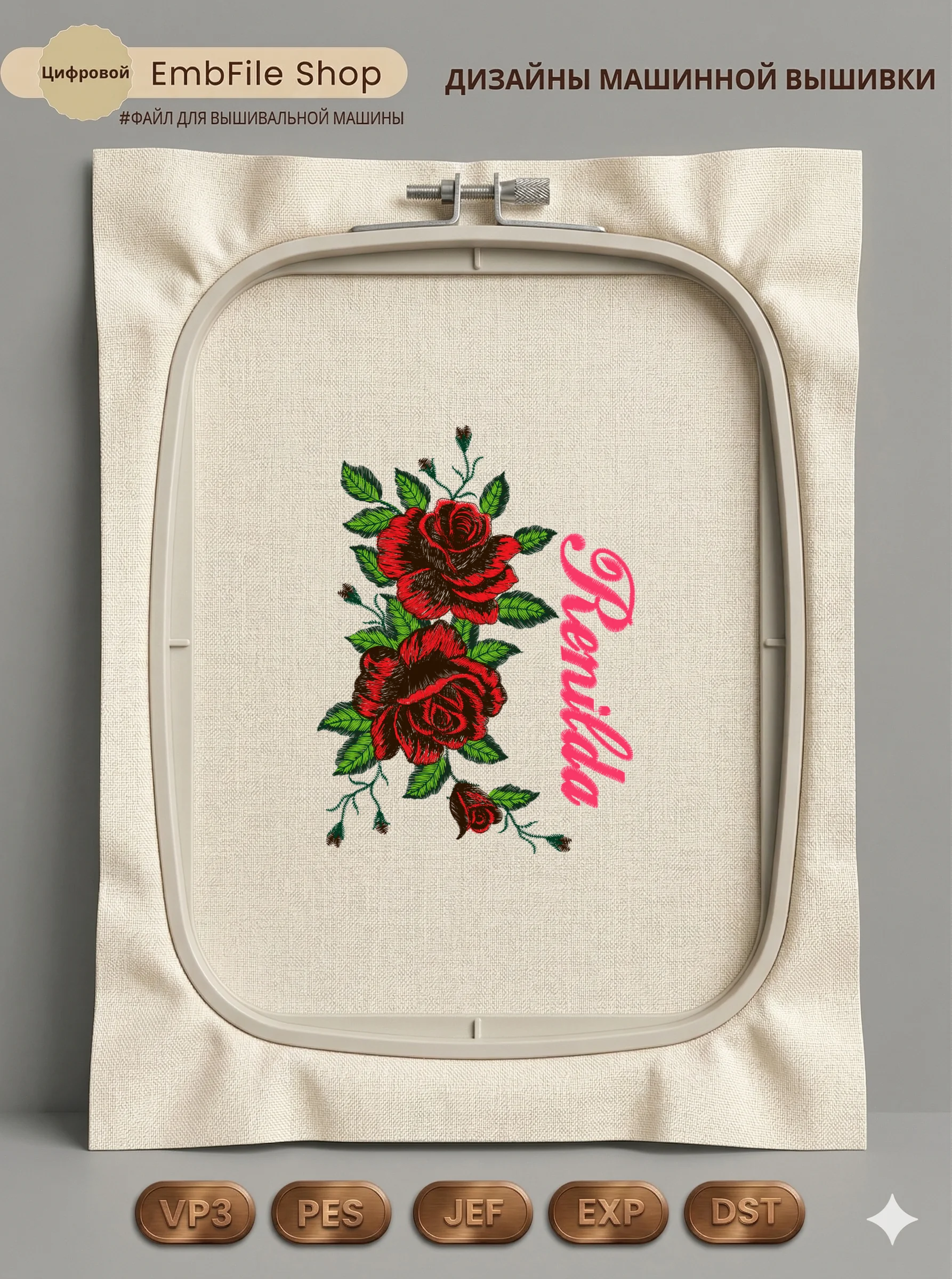 Это цифровой файл для вышивальной машины, а не физический товар (нашивка). Для работы с файлом вам необходимо иметь вышивальную машину и способ передачи файла на устройство (USB-флешка и т.д.).