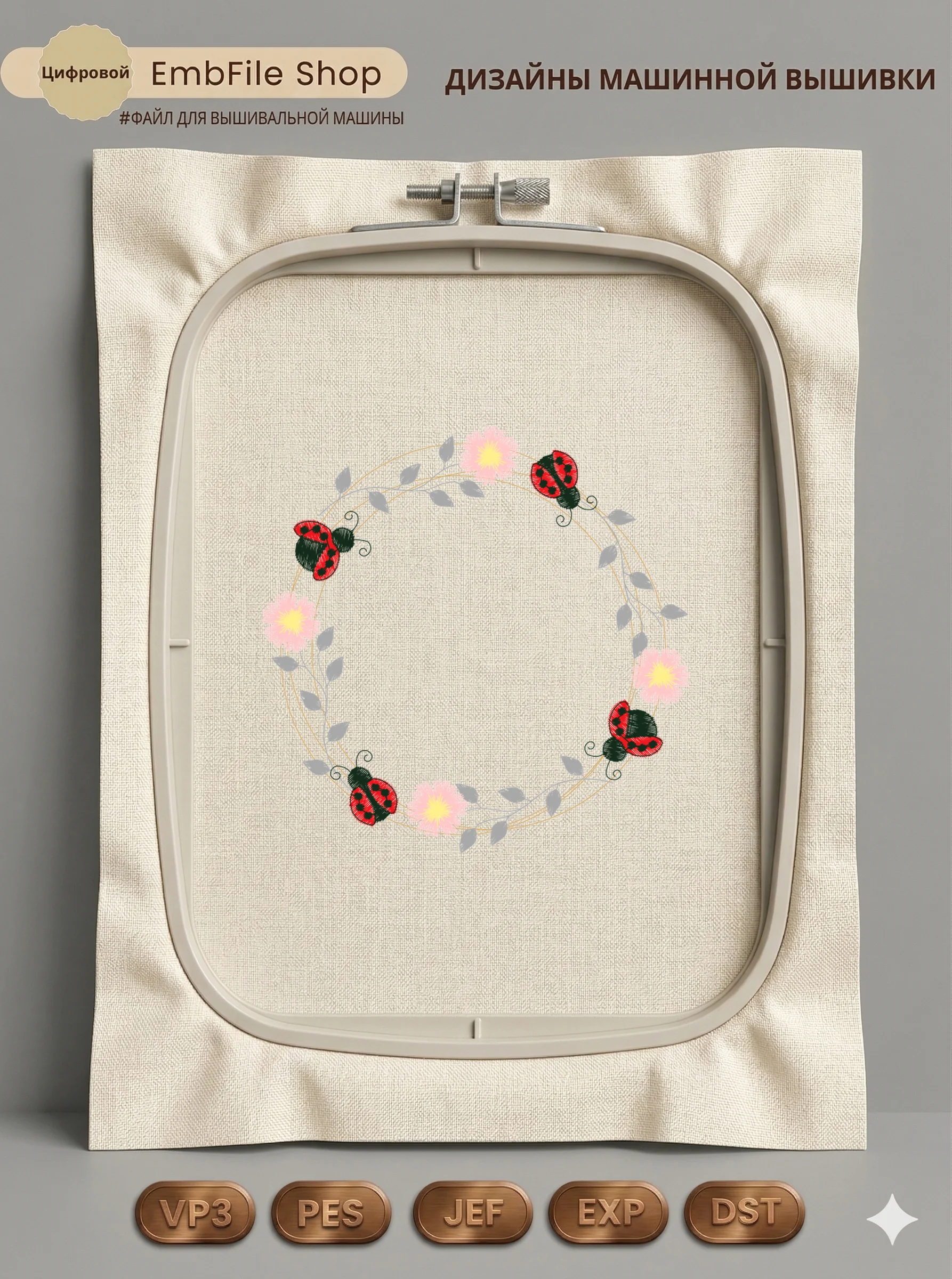 Это цифровой файл для вышивальной машины, а не физический товар (нашивка). Для работы с файлом вам необходимо иметь вышивальную машину и способ передачи файла на устройство (USB-флешка и т.д.).