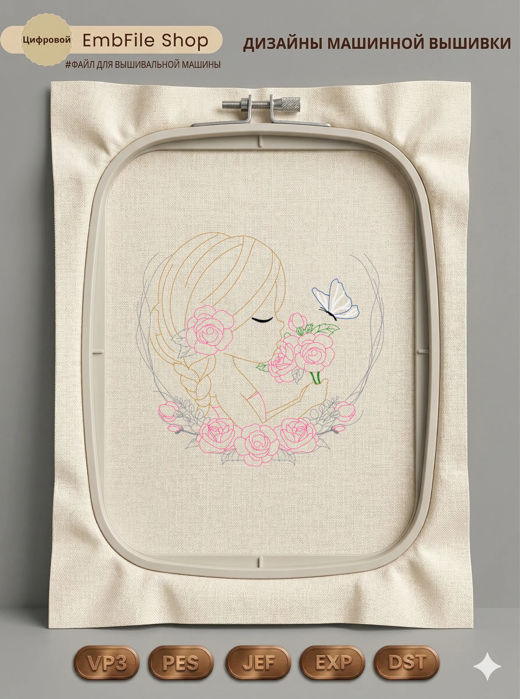 Дизайн протестирован на различных типах тканей, что гарантирует чистое и стабильное нанесение стежков.