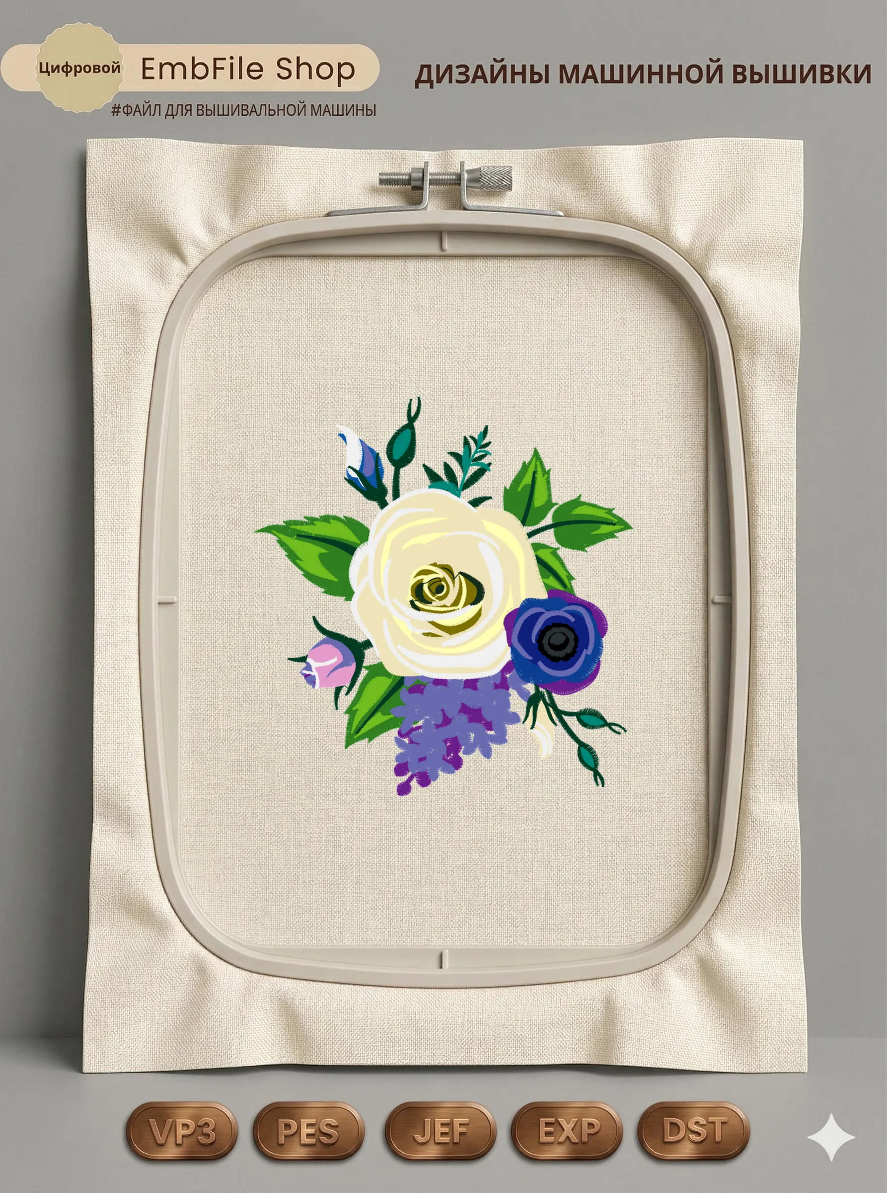 Это цифровой файл для вышивальной машины, а не физический товар (нашивка). Для работы с файлом вам необходимо иметь вышивальную машину и способ передачи файла на устройство (USB-флешка и т.д.).