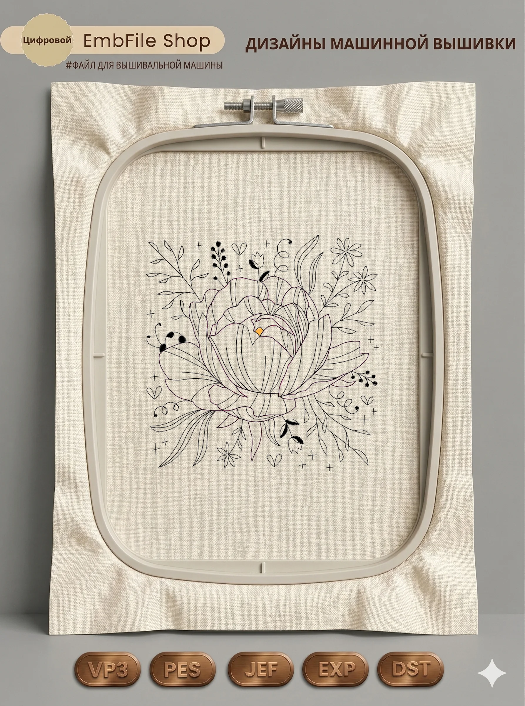 Это цифровой файл для вышивальной машины, а не физический товар (нашивка). Для работы с файлом вам необходимо иметь вышивальную машину и способ передачи файла на устройство (USB-флешка и т.д.).