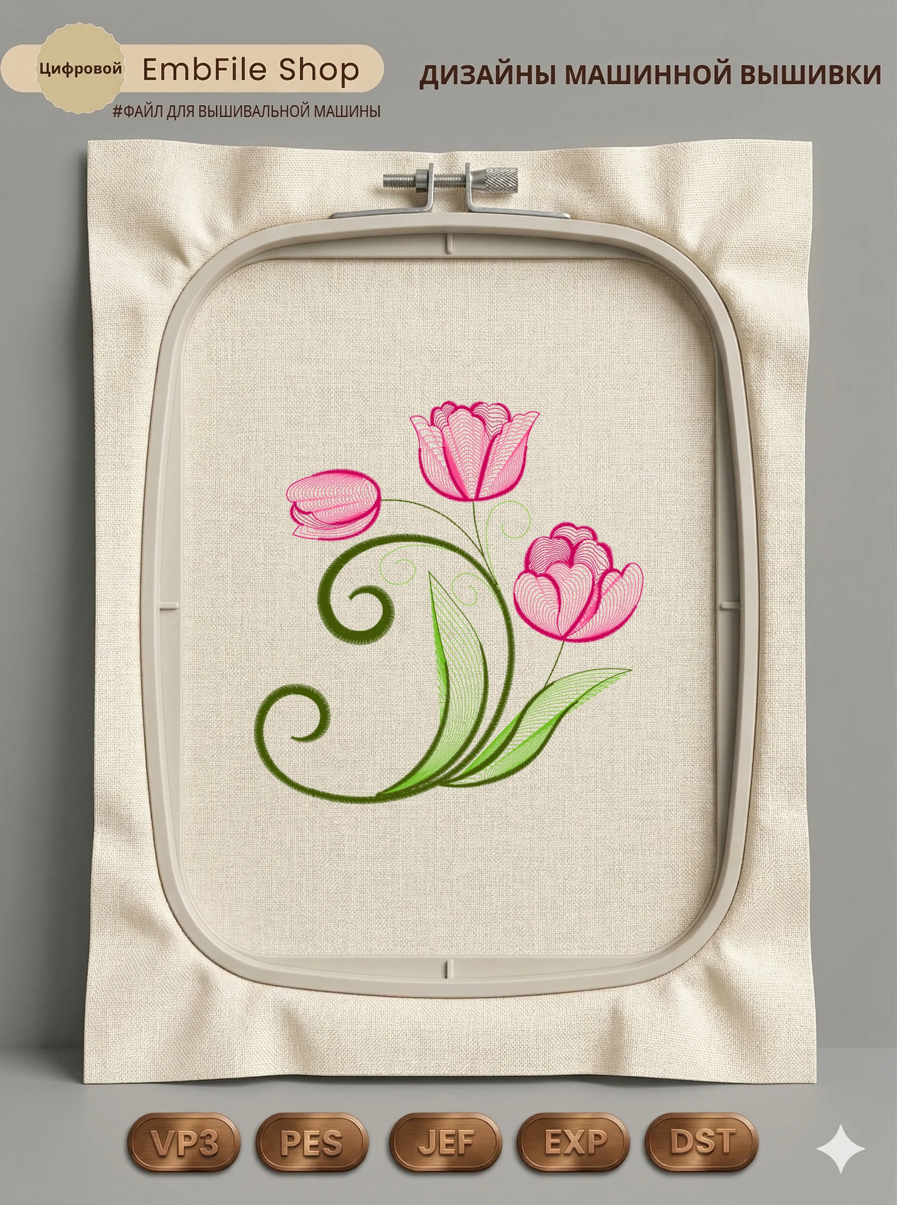 Это цифровой файл для вышивальной машины, а не физический товар (нашивка). Для работы с файлом вам необходимо иметь вышивальную машину и способ передачи файла на устройство (USB-флешка и т.д.).