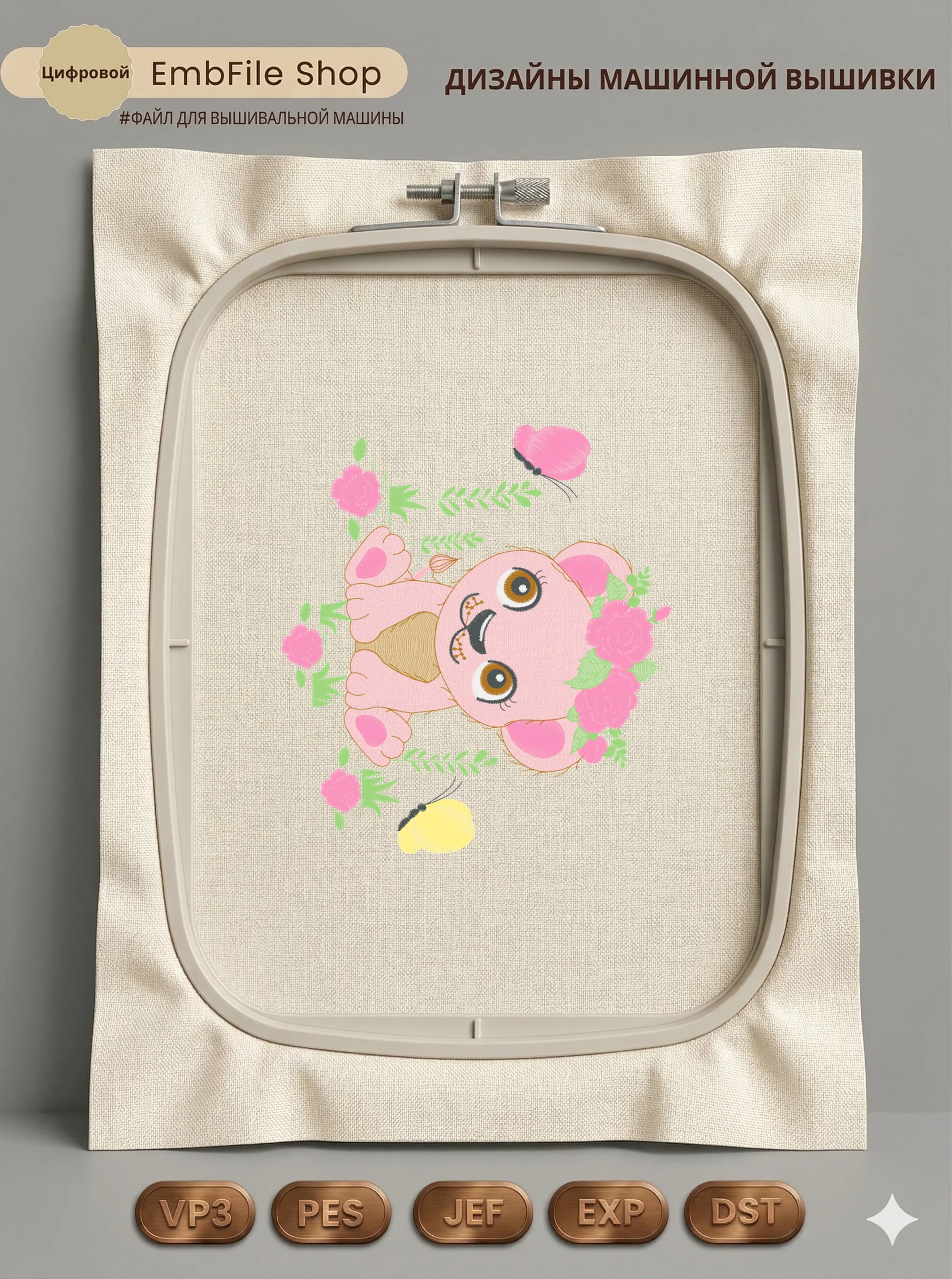 Дизайн протестирован на различных типах тканей, что гарантирует чистое и стабильное нанесение стежков.