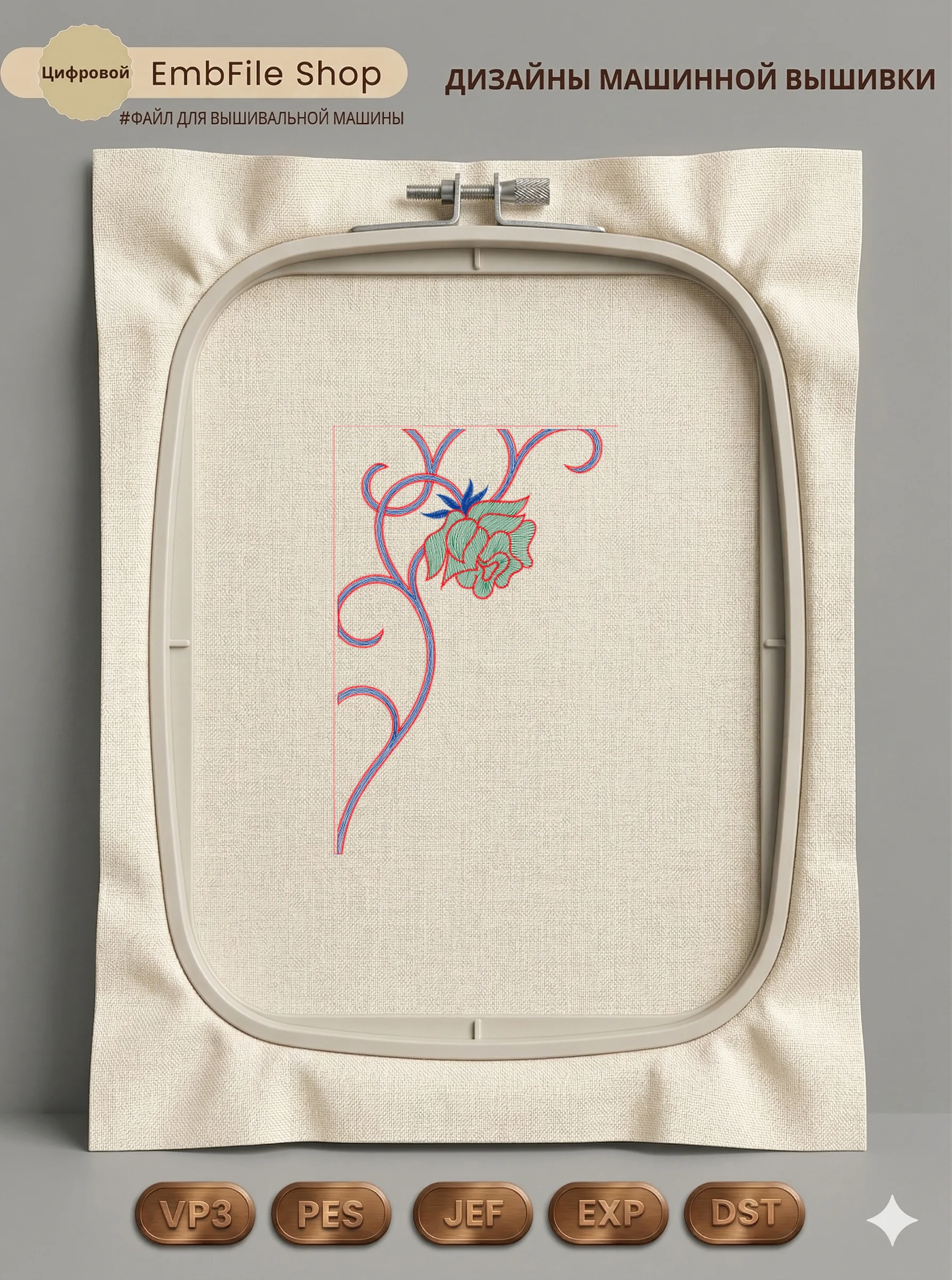Это цифровой файл для вышивальной машины, а не физический товар (нашивка). Для работы с файлом вам необходимо иметь вышивальную машину и способ передачи файла на устройство (USB-флешка и т.д.).