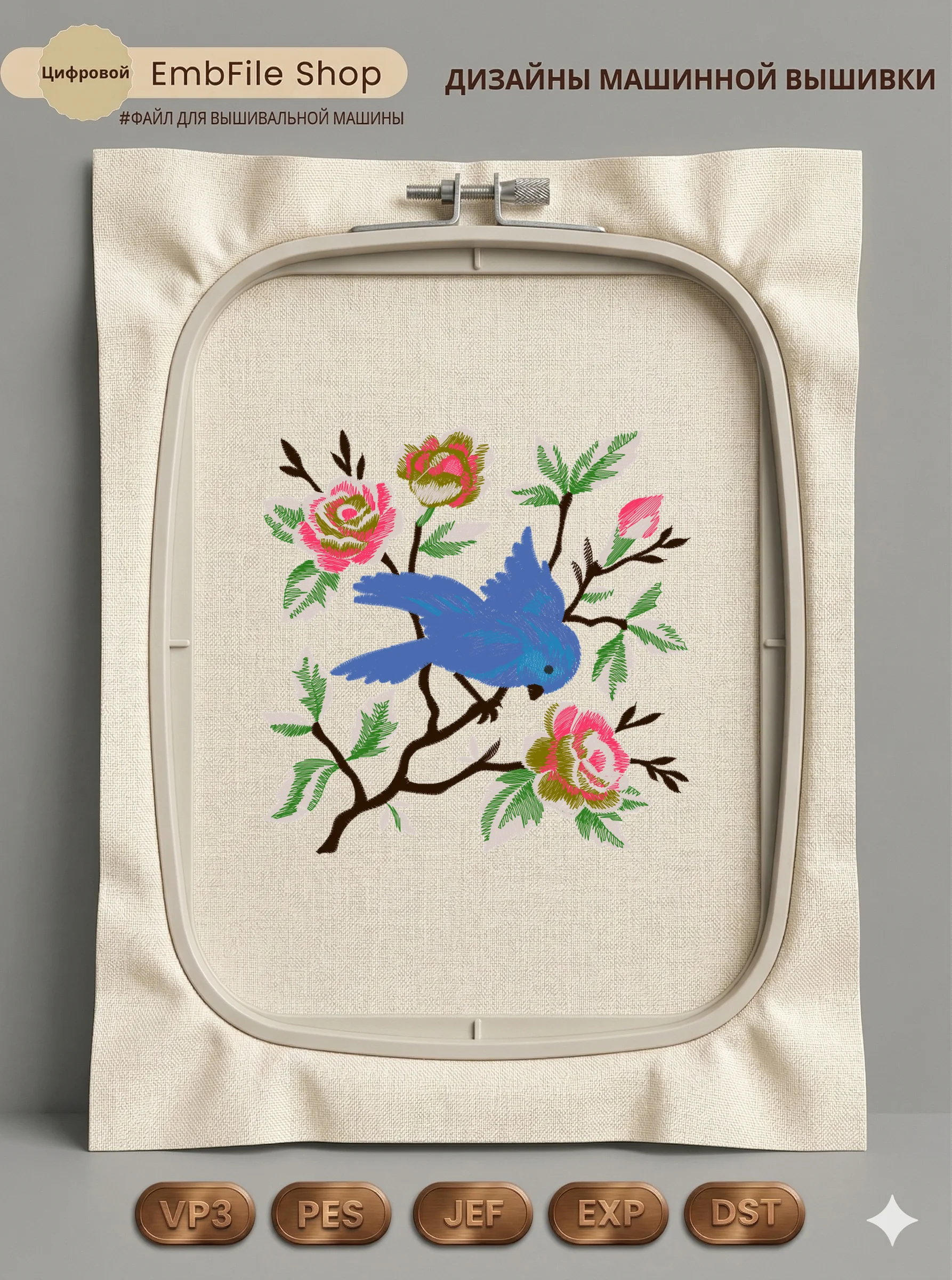 Дизайн протестирован на различных типах тканей, что гарантирует чистое и стабильное нанесение стежков.