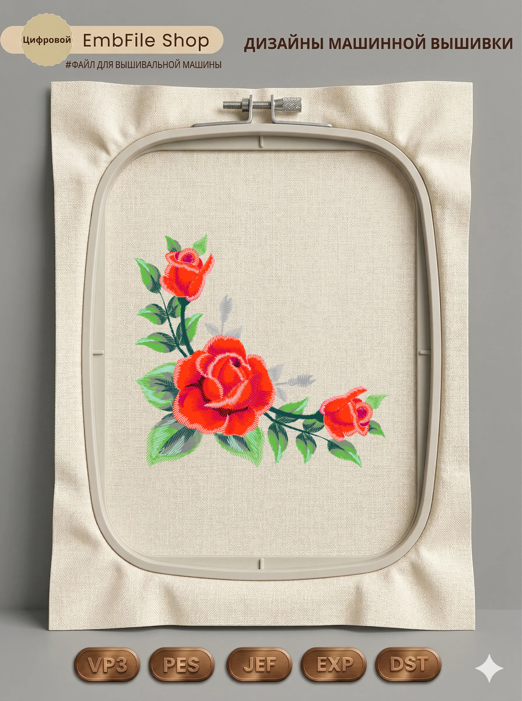 Это цифровой файл для вышивальной машины, а не физический товар (нашивка). Для работы с файлом вам необходимо иметь вышивальную машину и способ передачи файла на устройство (USB-флешка и т.д.).