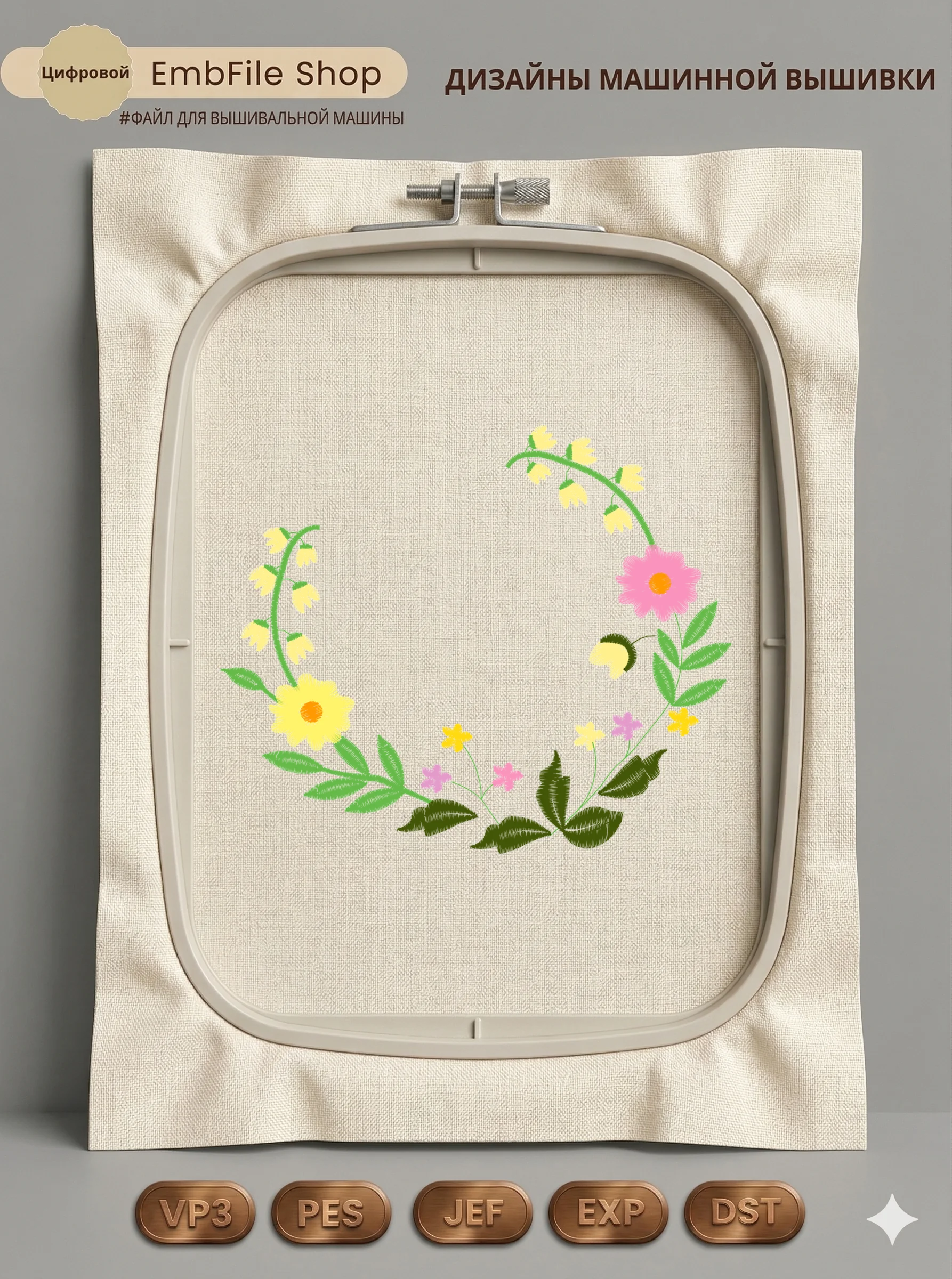 Это цифровой файл для вышивальной машины, а не физический товар (нашивка). Для работы с файлом вам необходимо иметь вышивальную машину и способ передачи файла на устройство (USB-флешка и т.д.).