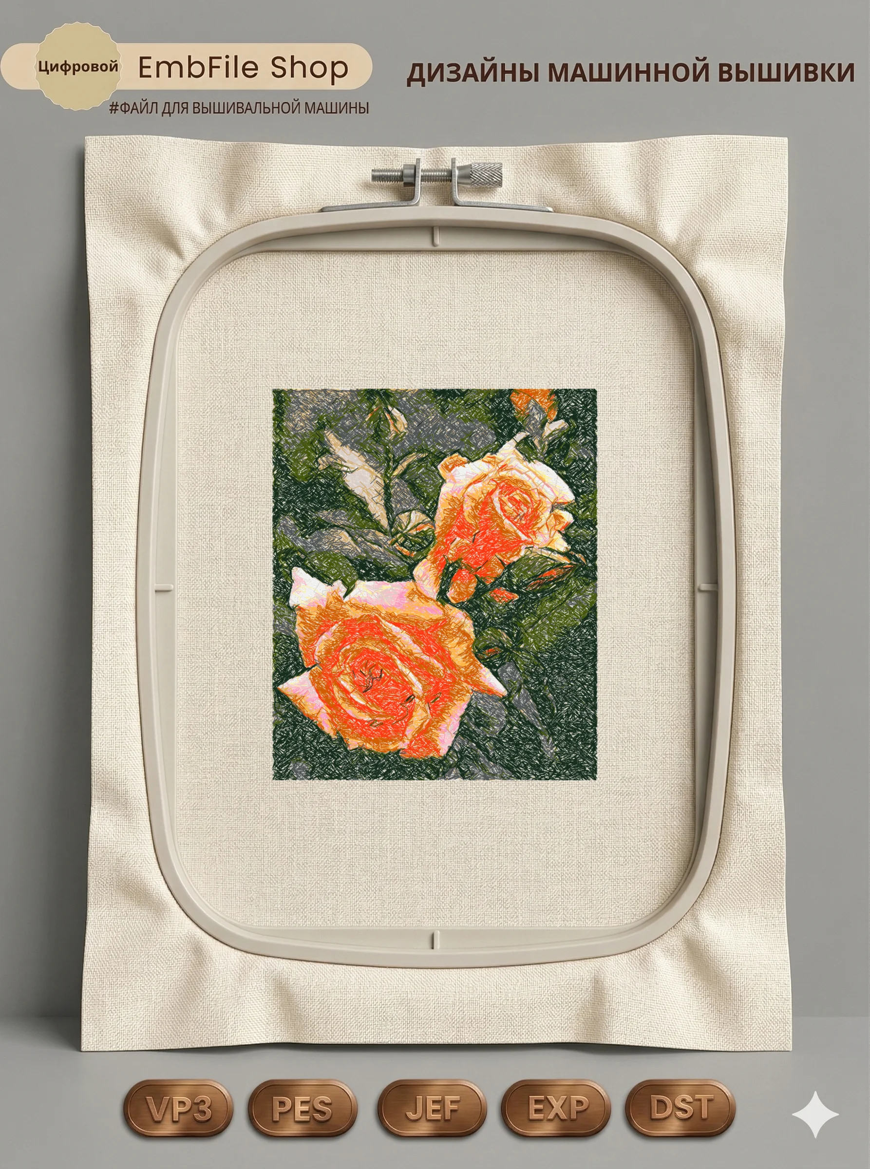 Это цифровой файл для вышивальной машины, а не физический товар (нашивка). Для работы с файлом вам необходимо иметь вышивальную машину и способ передачи файла на устройство (USB-флешка и т.д.).