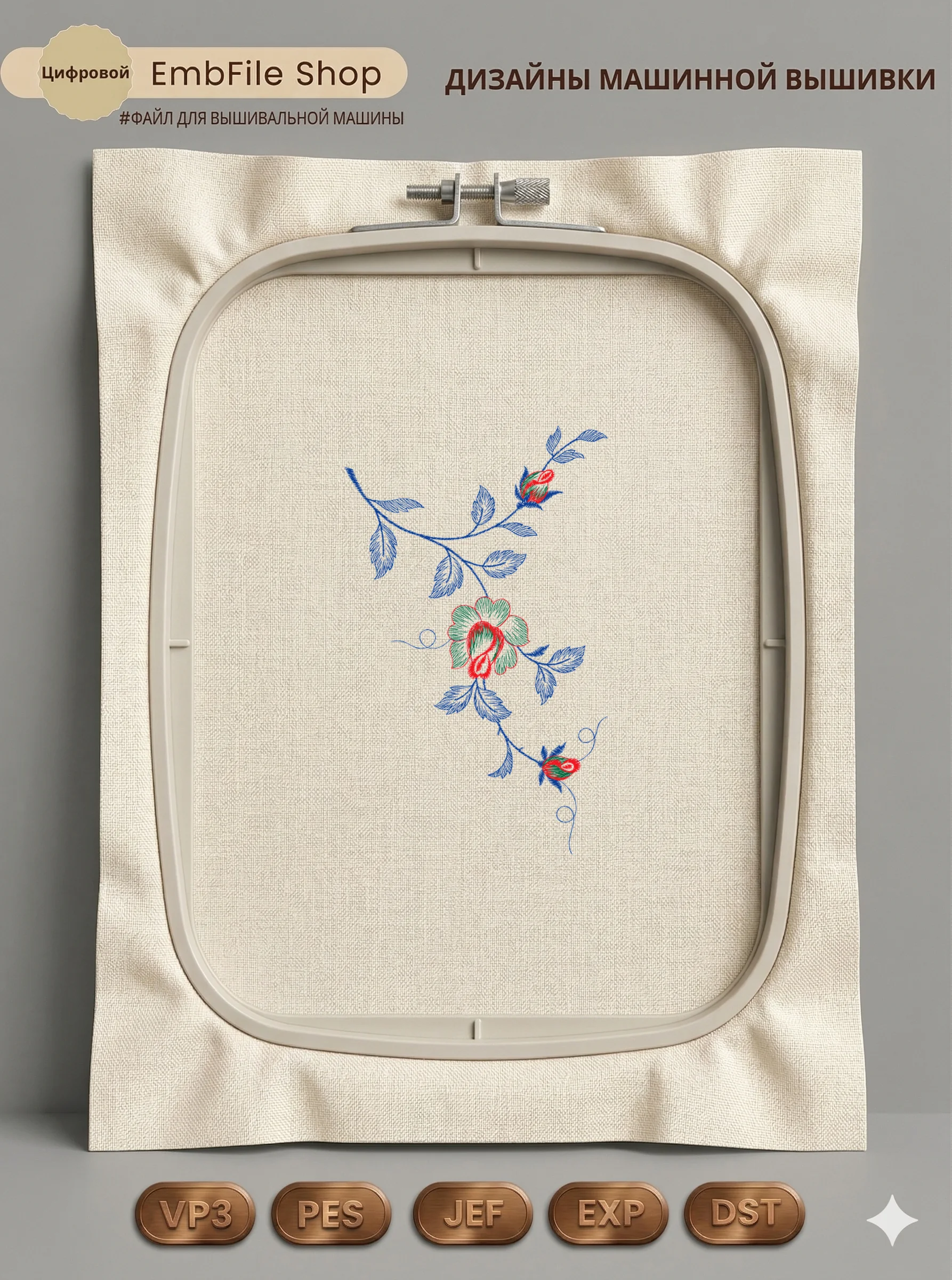 Это цифровой файл для вышивальной машины, а не физический товар (нашивка). Для работы с файлом вам необходимо иметь вышивальную машину и способ передачи файла на устройство (USB-флешка и т.д.).