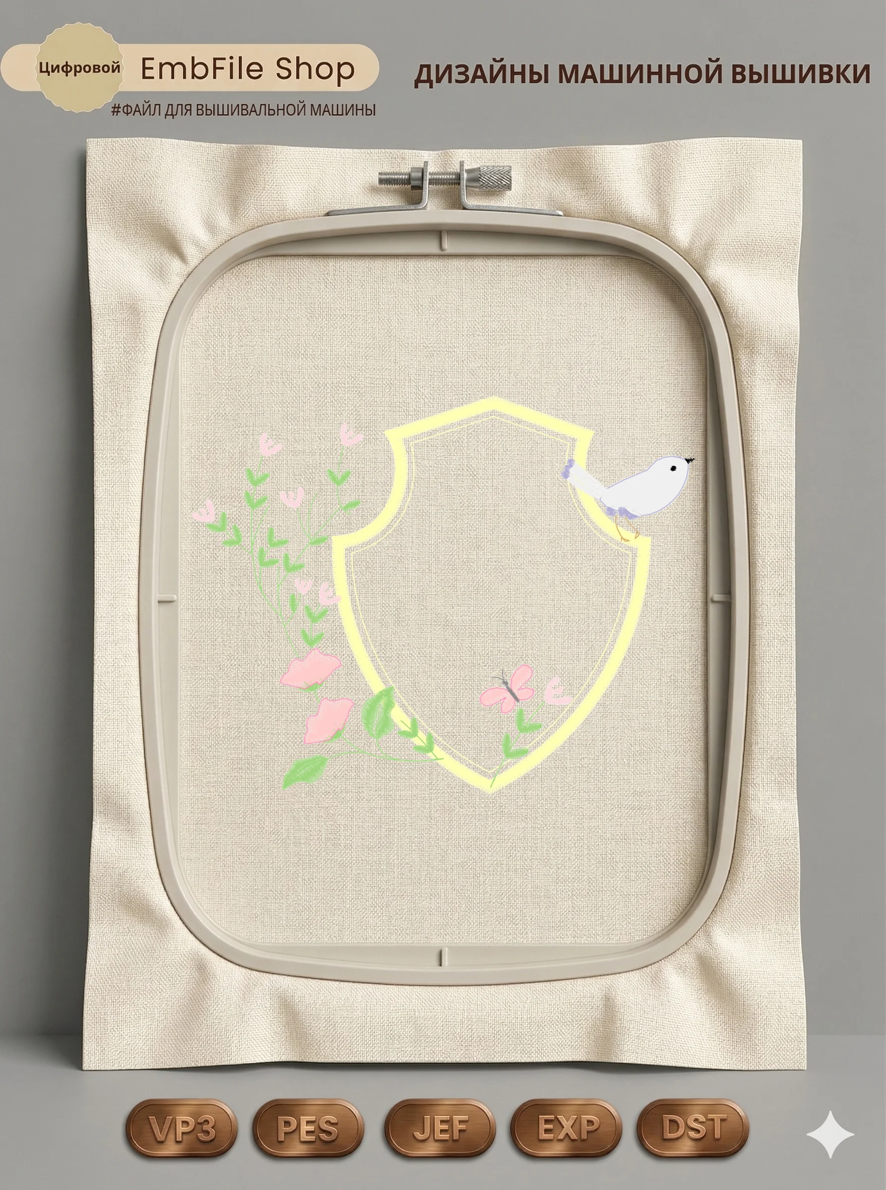 Это цифровой файл для вышивальной машины, а не физический товар (нашивка). Для работы с файлом вам необходимо иметь вышивальную машину и способ передачи файла на устройство (USB-флешка и т.д.).