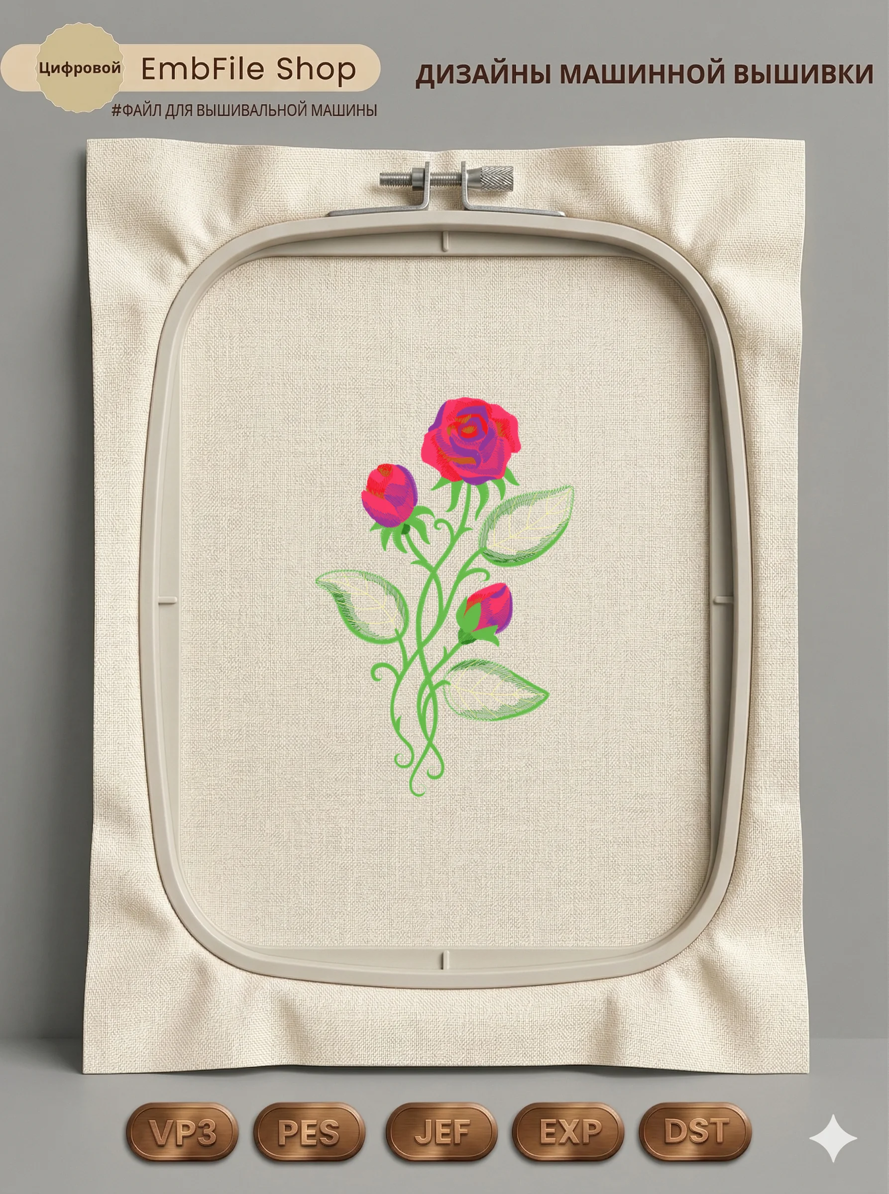 Дизайн машинной вышивки. Роза (Размер 175×270мм). Форматы: DST PES JEF VP3 EXP XXX . Стежков: 35652