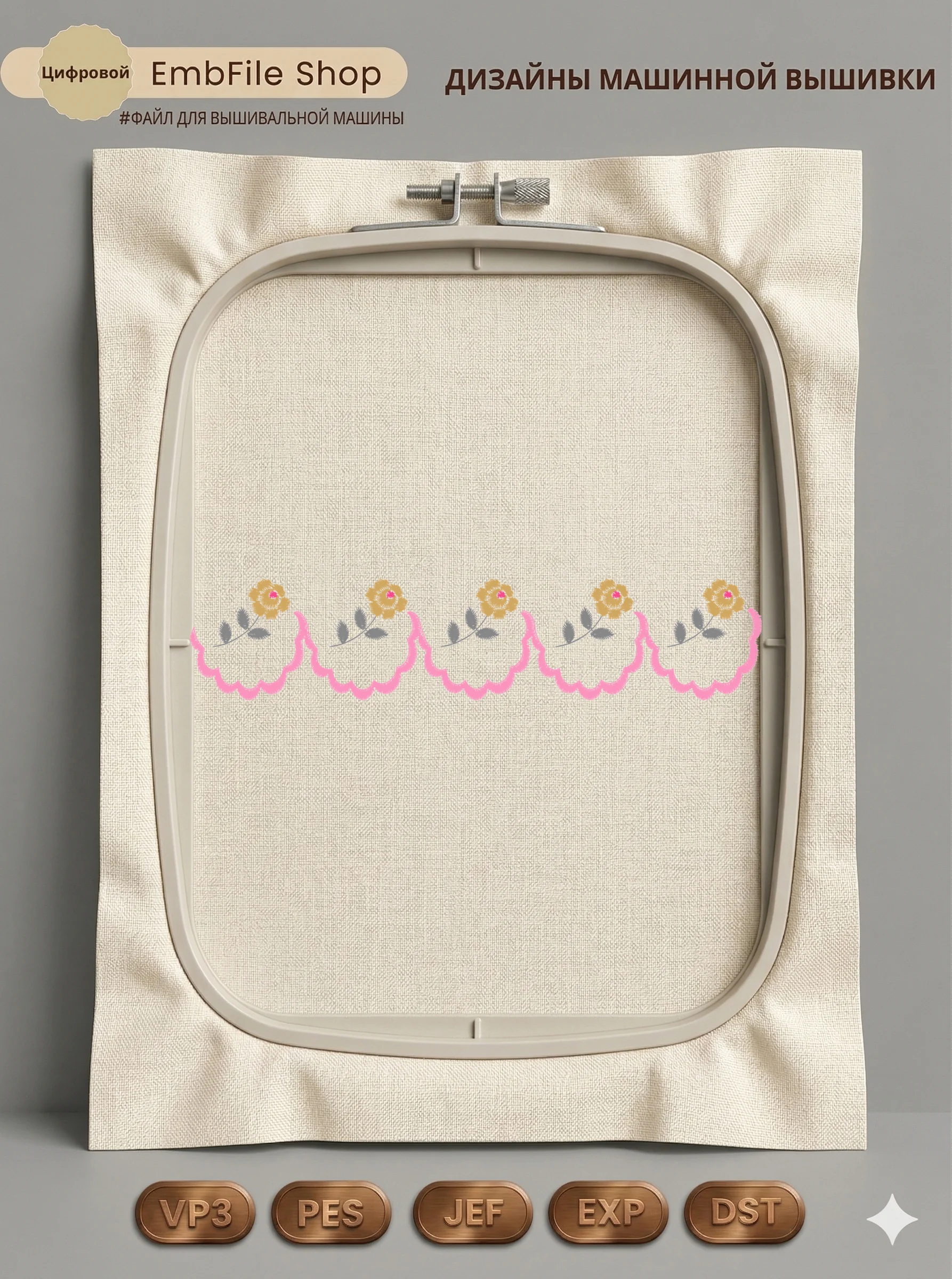 Дизайн протестирован на различных типах тканей, что гарантирует чистое и стабильное нанесение стежков.