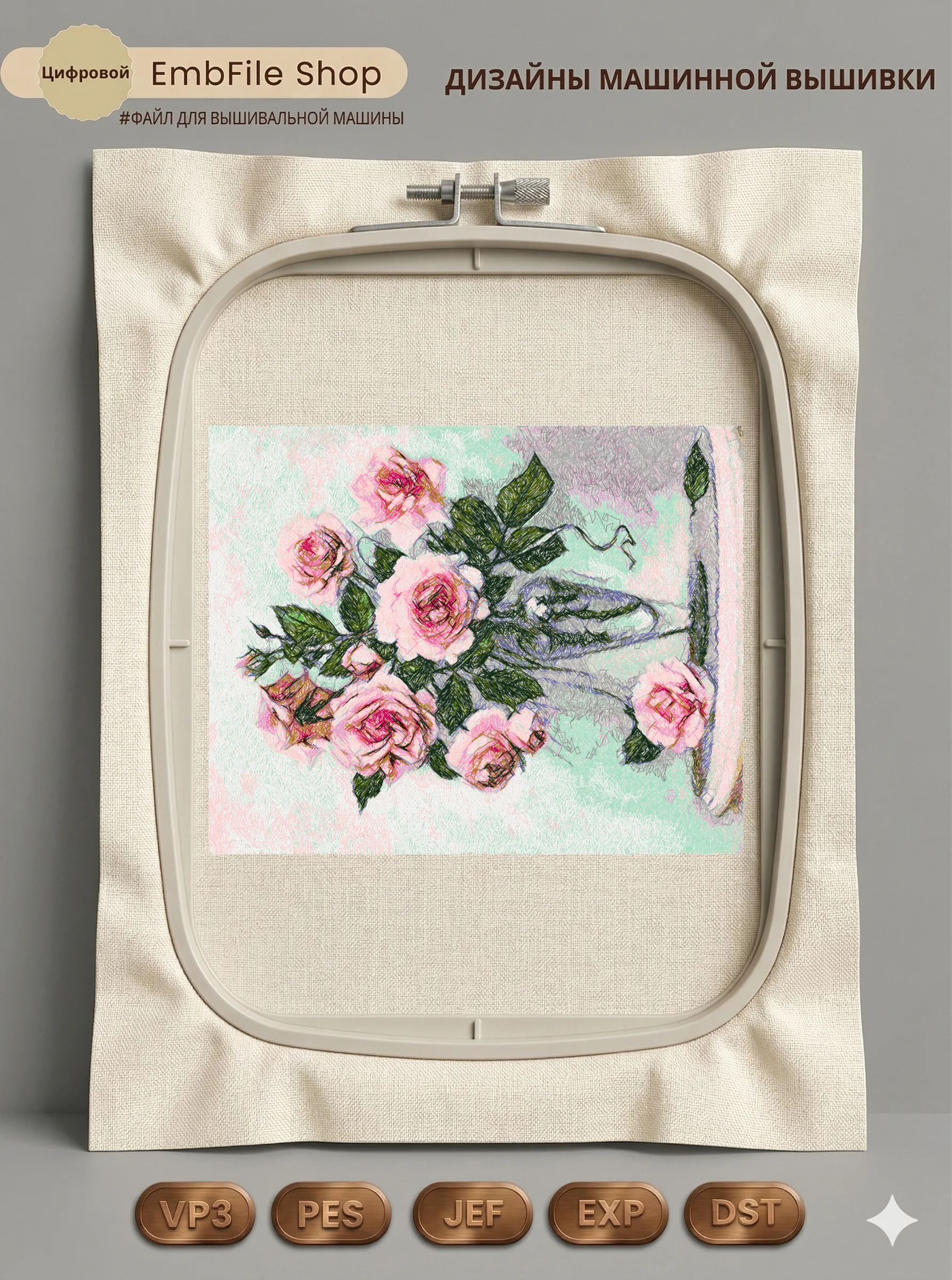 Это цифровой файл для вышивальной машины, а не физический товар (нашивка). Для работы с файлом вам необходимо иметь вышивальную машину и способ передачи файла на устройство (USB-флешка и т.д.).