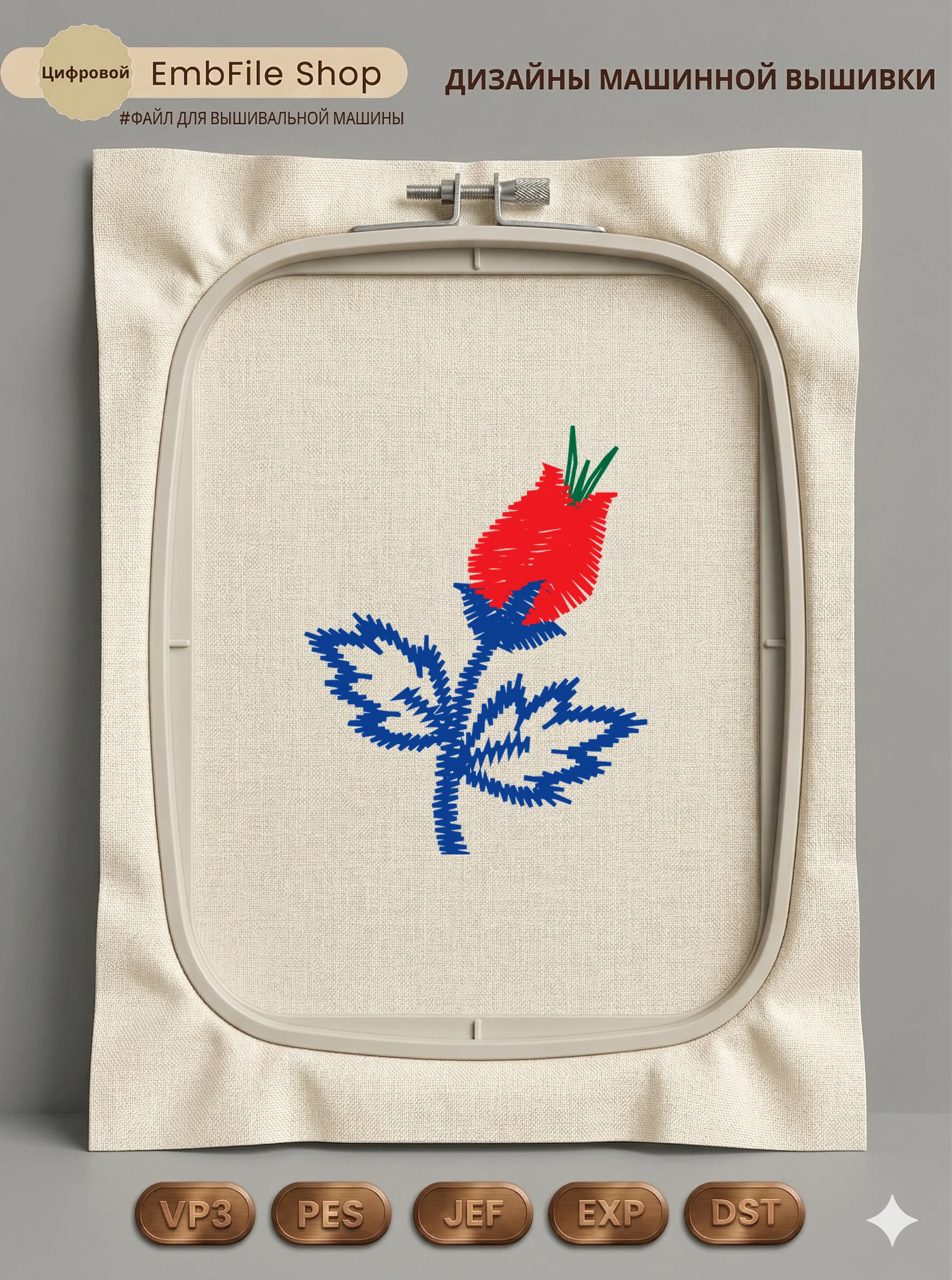 Это цифровой файл для вышивальной машины, а не физический товар (нашивка). Для работы с файлом вам необходимо иметь вышивальную машину и способ передачи файла на устройство (USB-флешка и т.д.).