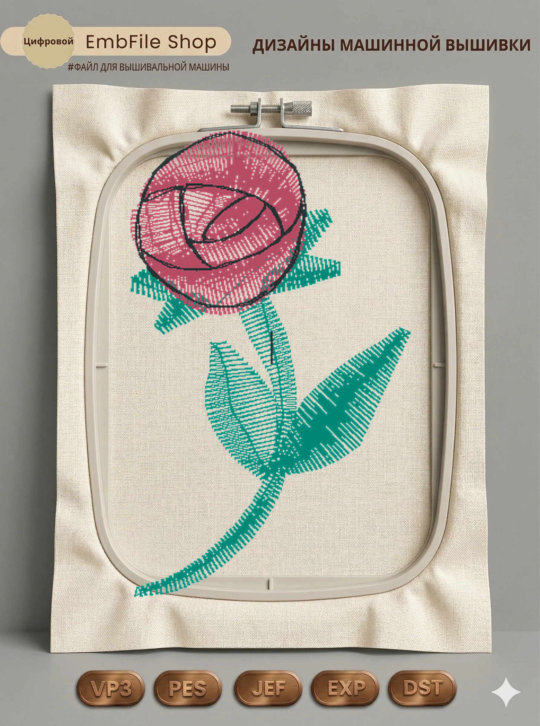 Это цифровой файл для вышивальной машины, а не физический товар (нашивка). Для работы с файлом вам необходимо иметь вышивальную машину и способ передачи файла на устройство (USB-флешка и т.д.).