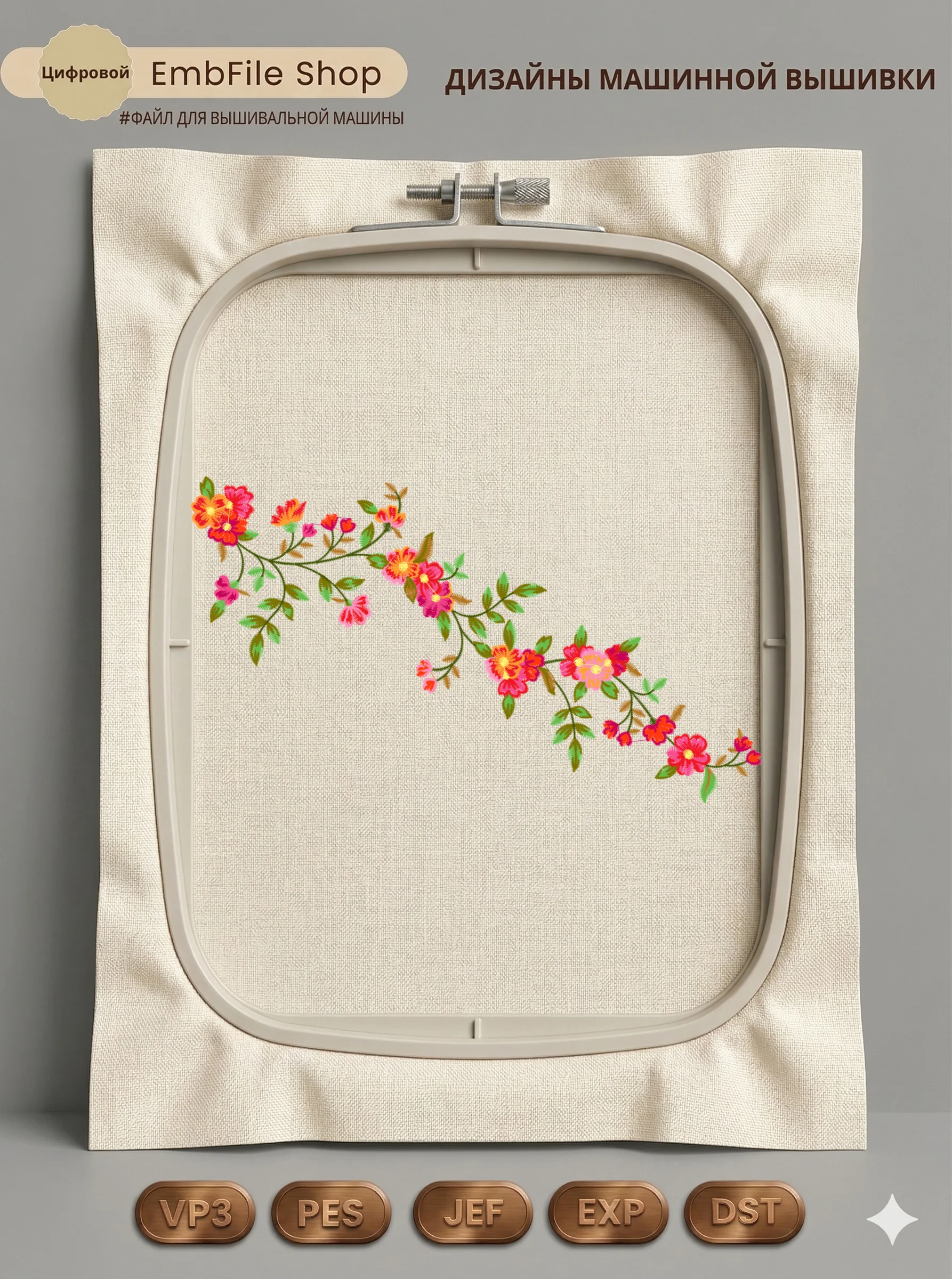Это цифровой файл для вышивальной машины, а не физический товар (нашивка). Для работы с файлом вам необходимо иметь вышивальную машину и способ передачи файла на устройство (USB-флешка и т.д.).