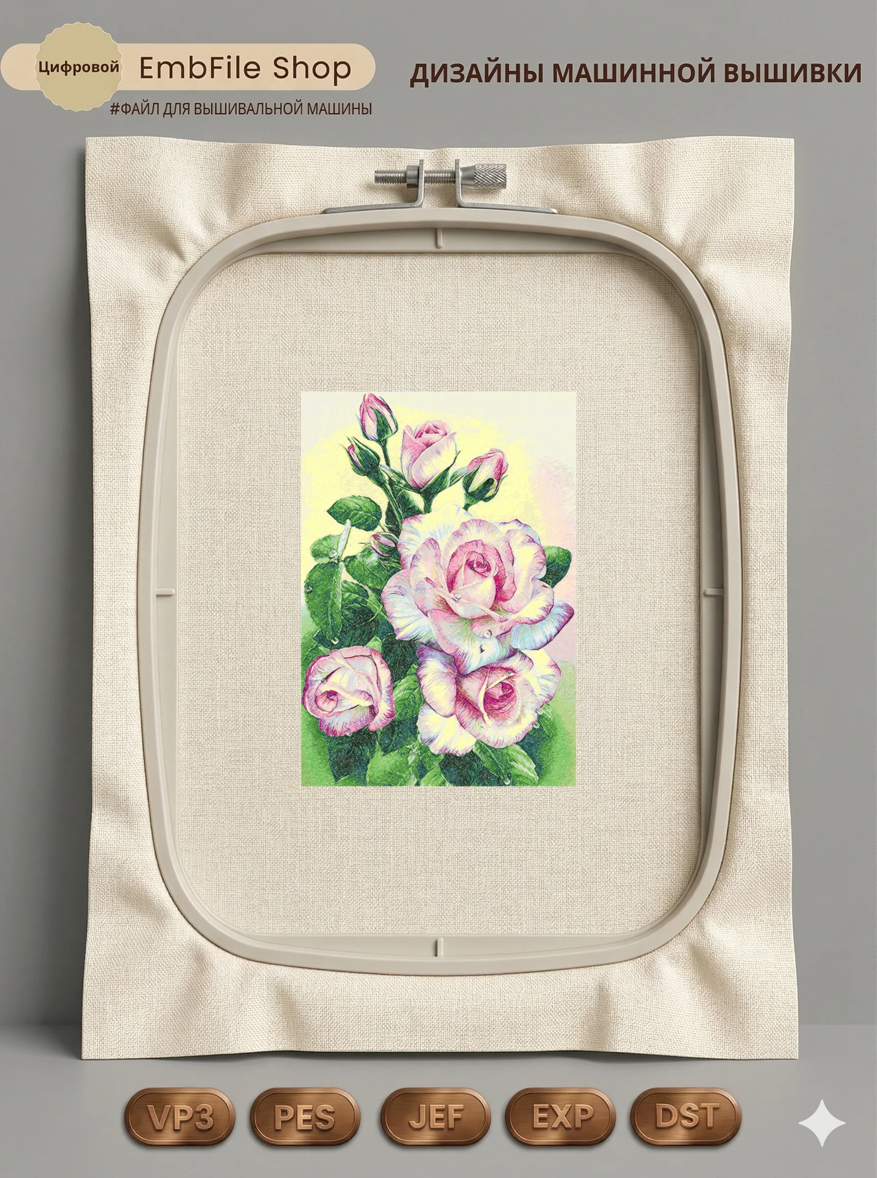 Это цифровой файл для вышивальной машины, а не физический товар (нашивка). Для работы с файлом вам необходимо иметь вышивальную машину и способ передачи файла на устройство (USB-флешка и т.д.).