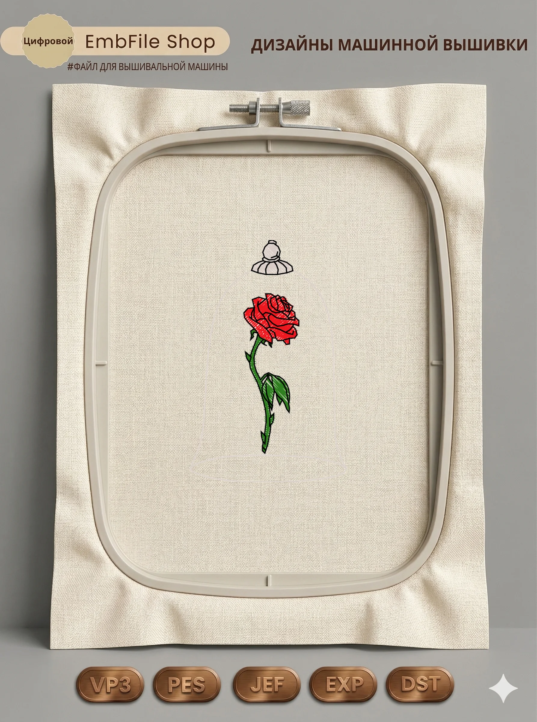 Дизайн машинной вышивки. Роза (Размер 39×60мм). Форматы: DST PES JEF VP3 EXP XXX . Стежков: 1818
