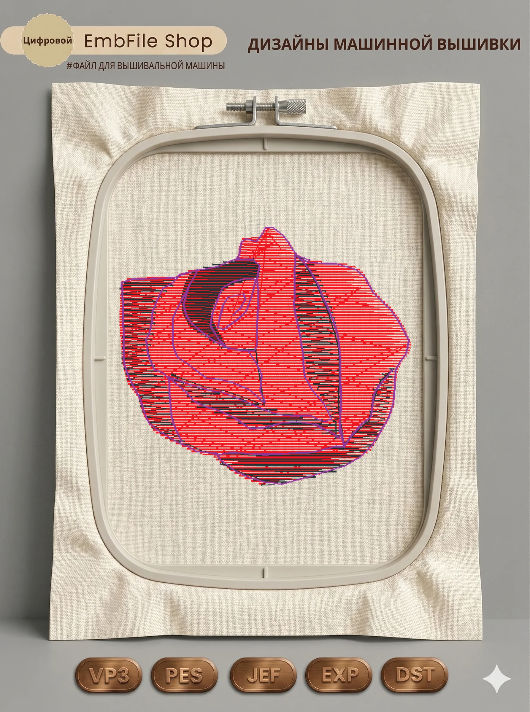 Это цифровой файл для вышивальной машины, а не физический товар (нашивка). Для работы с файлом вам необходимо иметь вышивальную машину и способ передачи файла на устройство (USB-флешка и т.д.).