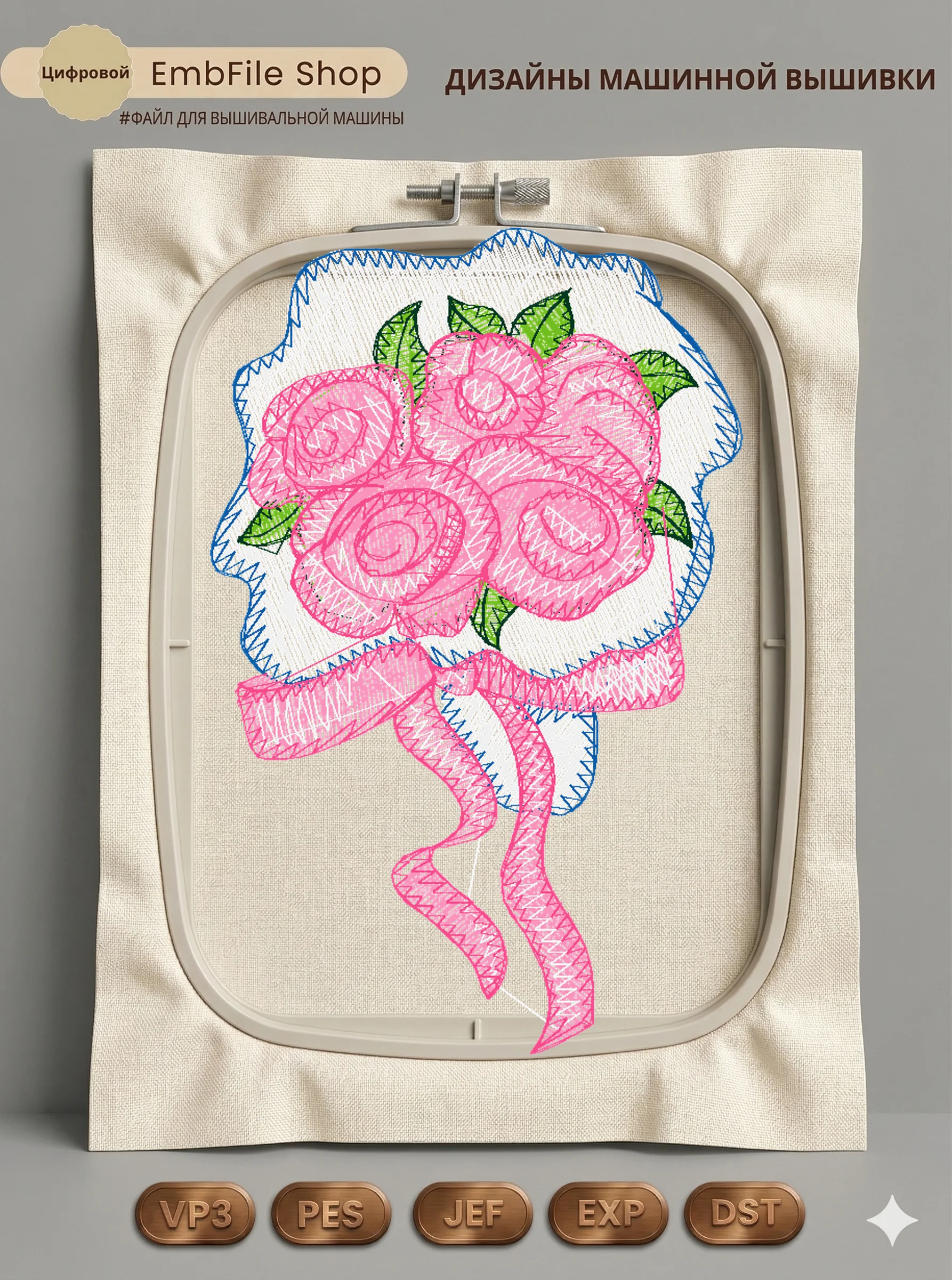 Это цифровой файл для вышивальной машины, а не физический товар (нашивка). Для работы с файлом вам необходимо иметь вышивальную машину и способ передачи файла на устройство (USB-флешка и т.д.).