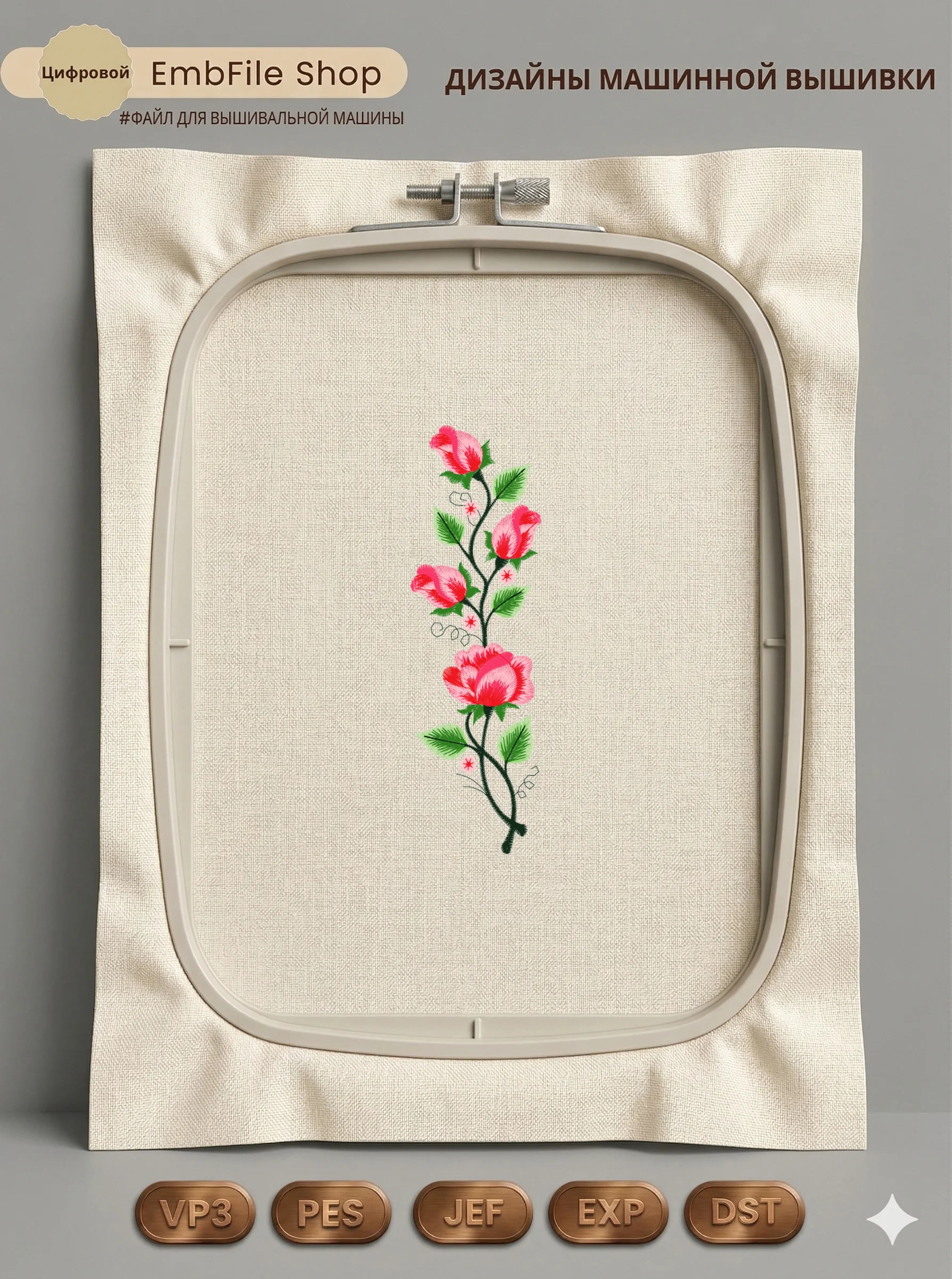 Дизайн машинной вышивки. Роза (Размер 54×178мм). Форматы: DST PES JEF VP3 EXP XXX . Стежков: 14438