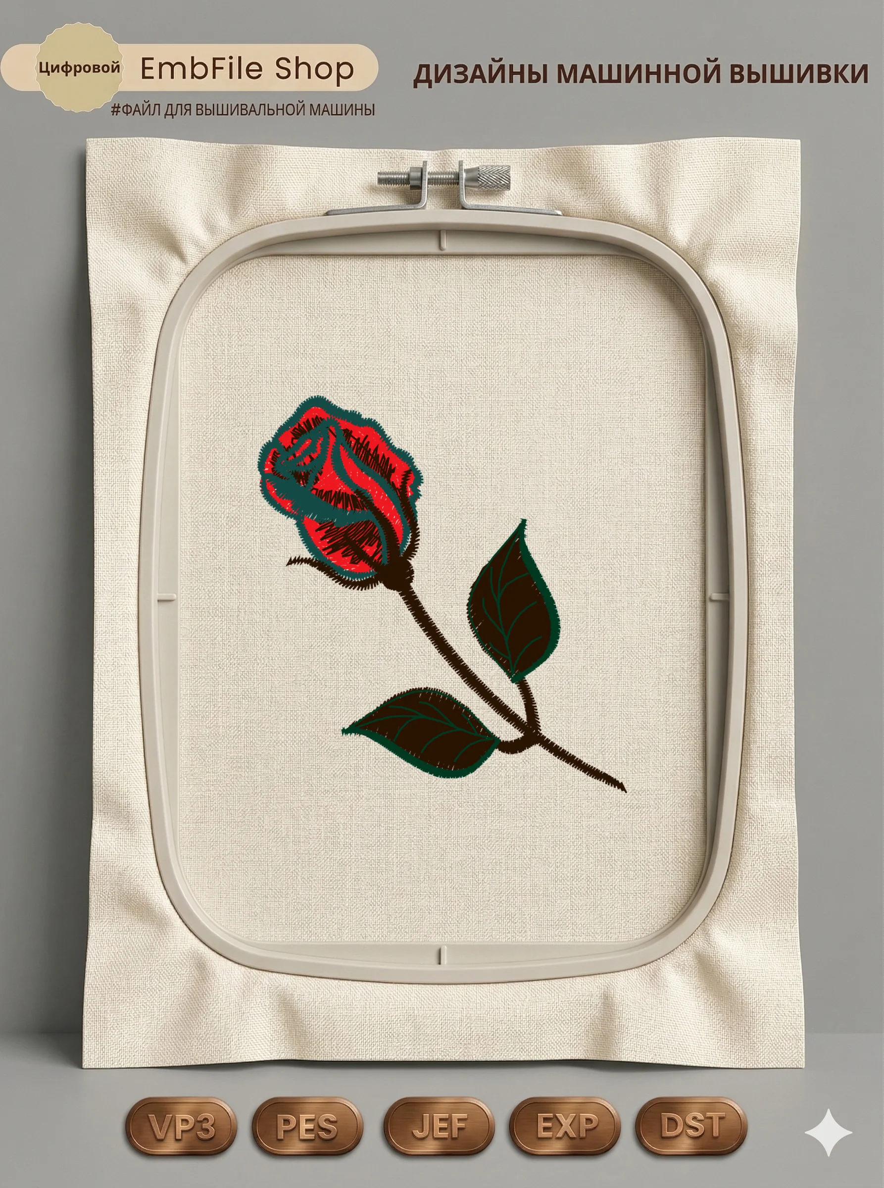 Это цифровой файл для вышивальной машины, а не физический товар (нашивка). Для работы с файлом вам необходимо иметь вышивальную машину и способ передачи файла на устройство (USB-флешка и т.д.).