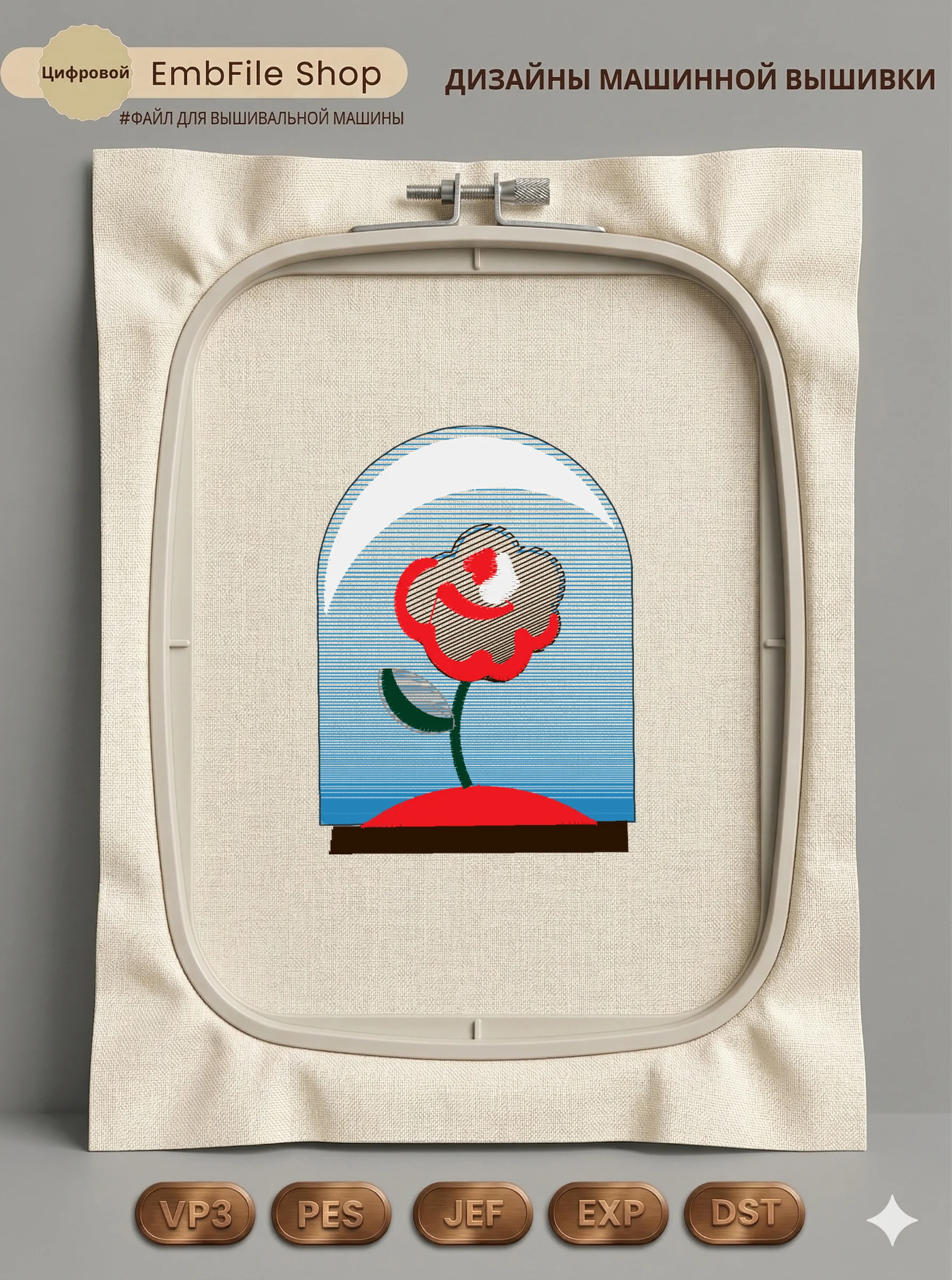 Это цифровой файл для вышивальной машины, а не физический товар (нашивка). Для работы с файлом вам необходимо иметь вышивальную машину и способ передачи файла на устройство (USB-флешка и т.д.).