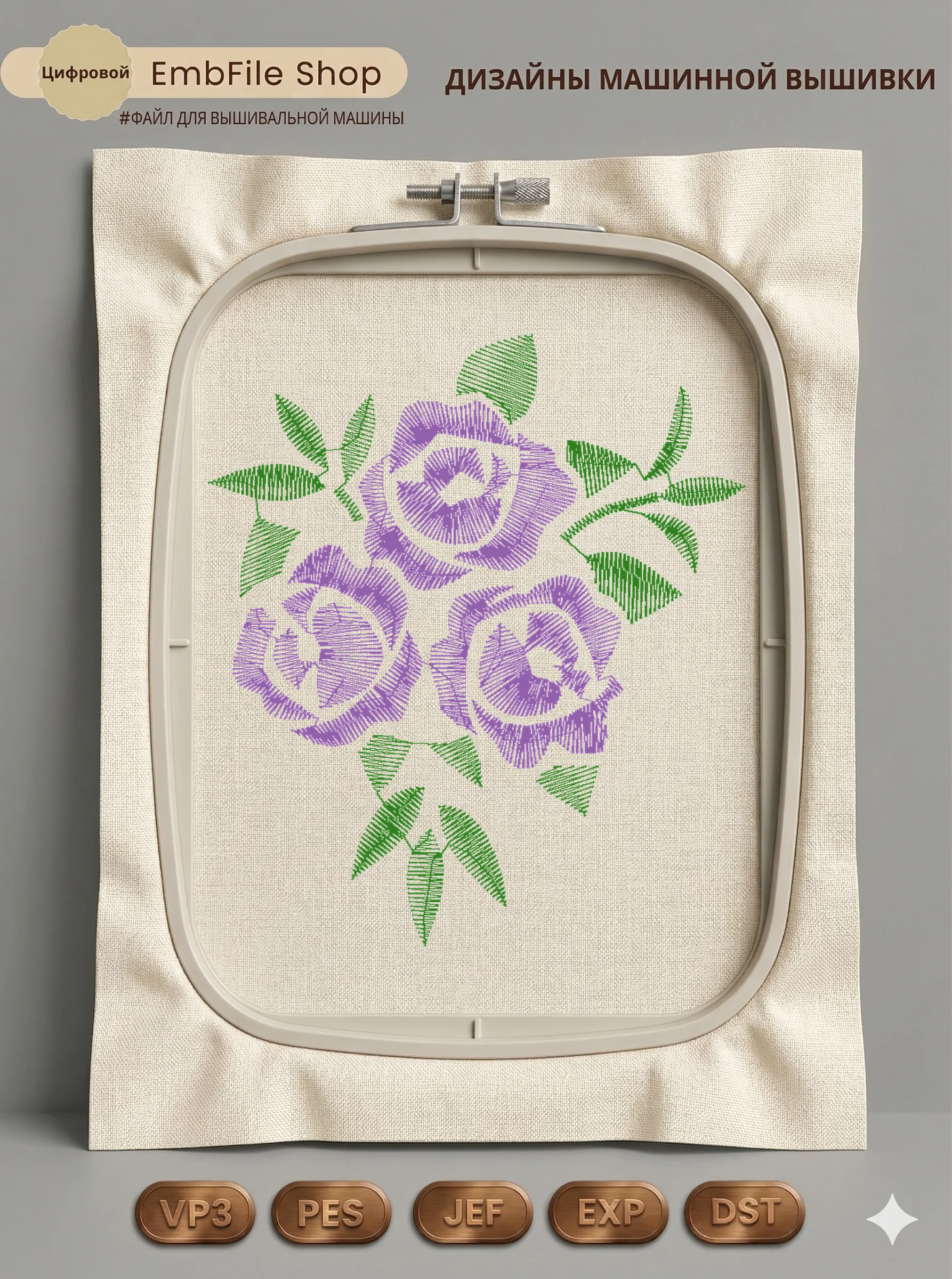 Это цифровой файл для вышивальной машины, а не физический товар (нашивка). Для работы с файлом вам необходимо иметь вышивальную машину и способ передачи файла на устройство (USB-флешка и т.д.).